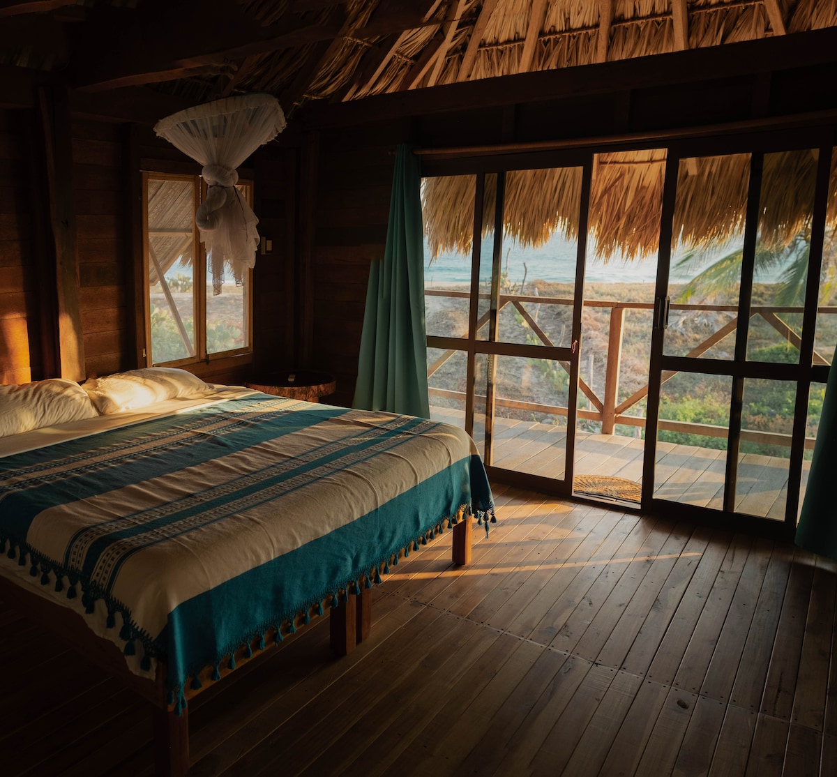 Übernachte in einer gemütlichen privaten Cabaña in der Arte Arena, direkt am unberührten Strand von Chacahua. Genieße den Meerblick von deinem privaten Garten mit eigenem Strandzugang, einem Queensize-Bett, einem eigenen Bad und einer natürlichen Außendusche. Von November bis März kannst du sowohl den Sonnenaufgang als auch den Sonnenuntergang über dem Meer beobachten. Perfekt für Naturliebhaber und Tiefenentspannung.