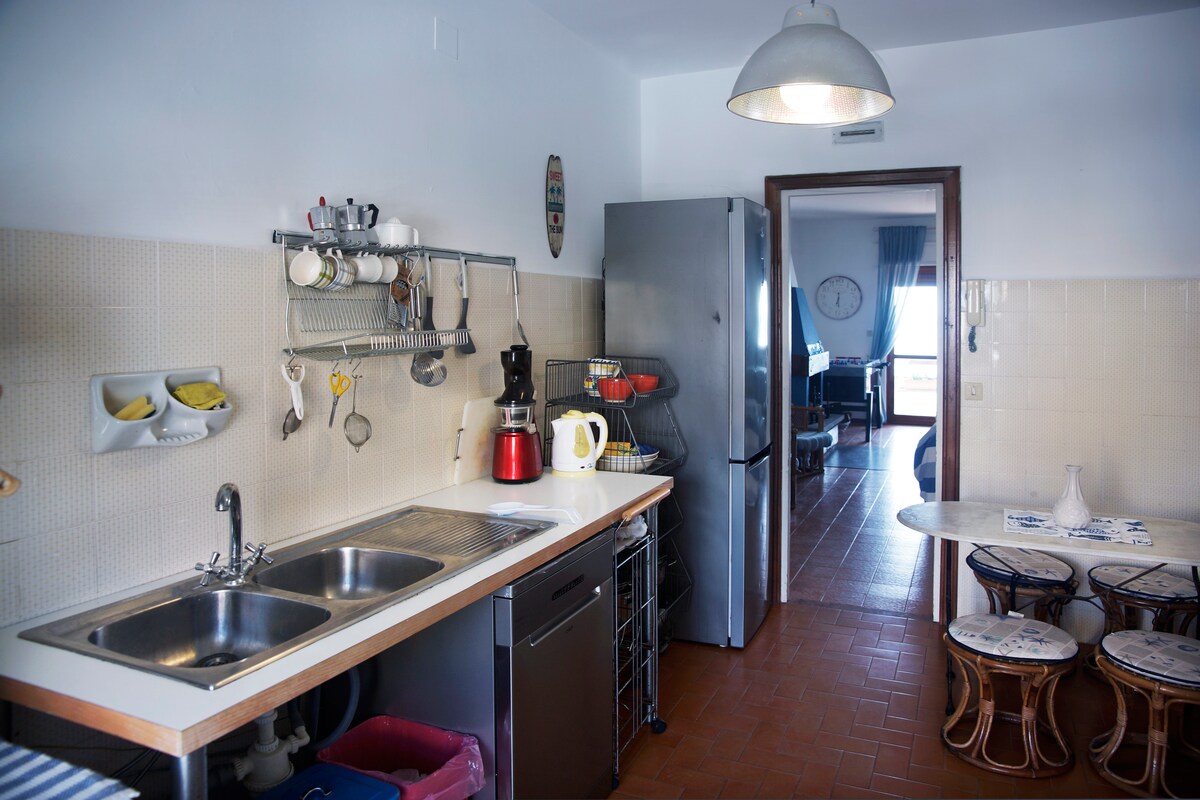 Wir begrügrüßen Sie in unserer Wohnung im Zentrum von Santa Marinella, ausgestattet mit Küche, Klimaanlage, TV, WLAN und einem großen Garten zum Entspannen. Das Haus befindet sich 5 Minuten vom Hauptstrand, allen Dienstleistungen und dem Bahnhof entfernt, von dem aus Sie leicht nach Rom, aber auch zum Schloss von Santa Severa und Pisa gelangen. Nur 15 Minuten entfernt liegt Civitavecchia mit seinen berühmten Thermen von Ficoncella und ist wichtig für diejenigen, die mit dem Schiff reisen, da es einen Hafen gibt.