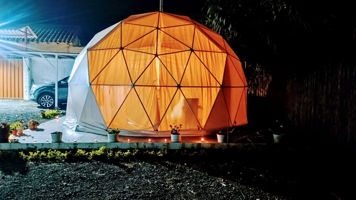 Entspanne dich in einer gemütlichen Kuppel, nur 5 Minuten vom Hauptpark entfernt. Umgeben von Gärten und einem kleinen Obstgarten bietet dieser Raum Ruhe und WLAN, ideal für Paare oder kleine Familien. Genieße Aktivitäten in der Nähe: einen Zoo mit Extremsportarten, Wandern, die Tota-Lagune mit ihrem aquatischen Charme und die traditionellen Restaurants der Region. Mit öffentlichen Verkehrsmitteln erreichbar und es steht ein privater Parkplatz zur Verfügung. Perfekt, um Boyacá zu erkunden und in einer einzigartigen natürlichen Umgebung zu trennen.