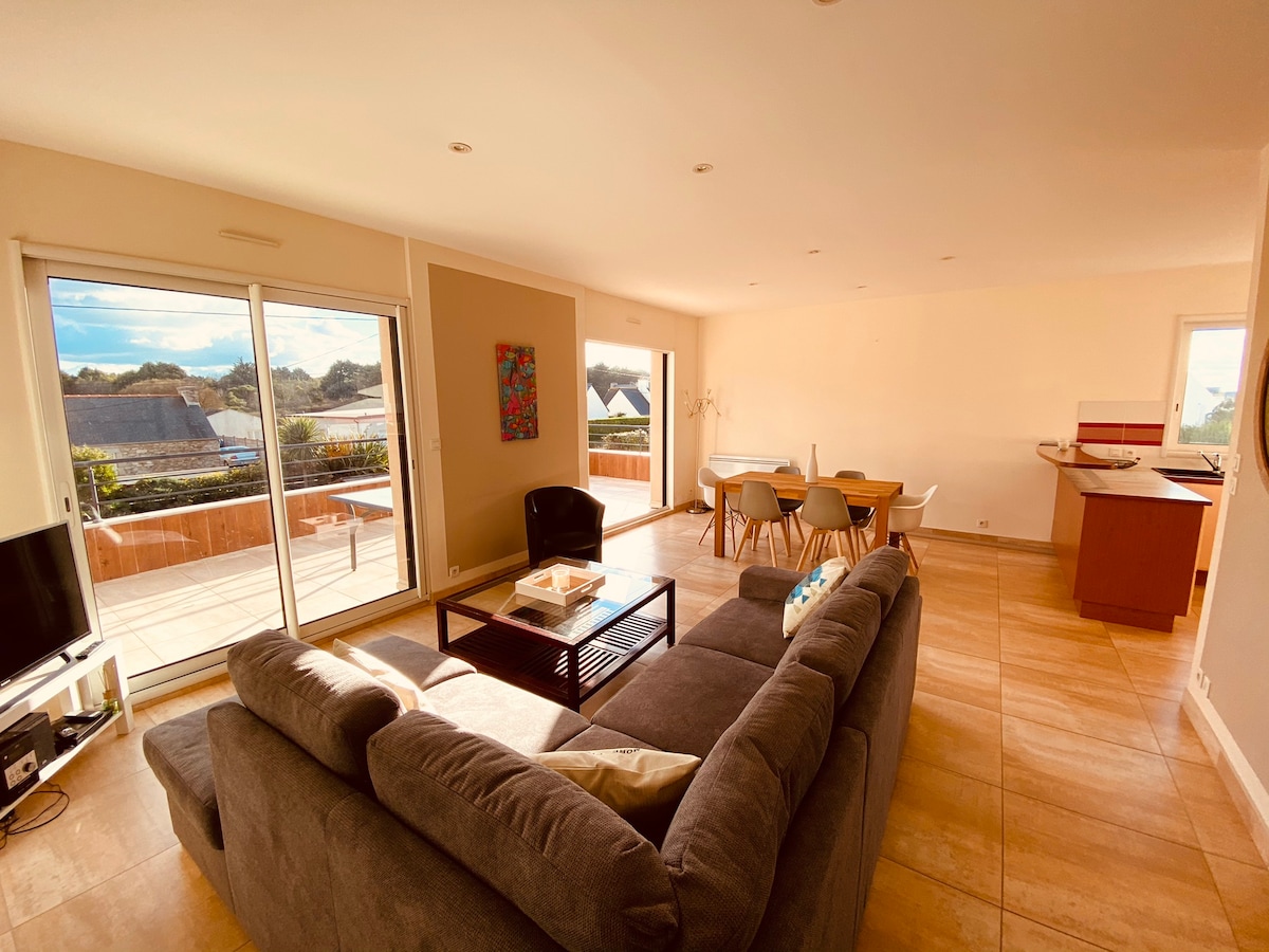 NEU 1. Vermietungen @lamaison.surlaplage ganze 🏠Unterkunft EINZIGARTIGER Zugang durch den Strand privater🌊 Garten mit Blick auf das Meer mit Außentisch . Kostenfreie Parkplätze in 150 m. Kein Lärm, ideal für Paare oder Familien mit kleinen Kindern. Direkter Zugang zum Strand⛱️ und 180° Blick auf die Insel Batz. GR34 am Fuße des Hauses. Viele Aktivitäten in der Nähe. 4 Pers , 1 Doppelbett, 2 Einzelbetten Vollständige Musik und Party abgelehnt, Vermietung ohne Haustiere, Nichtraucher. Anne und Franck begrüßen Sie den ganzen Sommer über ☀️