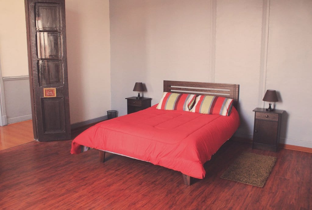 Queensize-Doppelzimmer, Gemeinschaftsbad H/M und 3 Duschen. Das Hotel liegt 600 Meter von der U-Bahn-Station Baquedano und Bellas Artes entfernt, von wo aus du überall in Santiago gelangen kannst. Sie sind in der Nähe von touristischen Orten wie Cerro San Cristobal, Casa Pablo Neruda, Theatern, Bohemian Area (Barrio Bellavista). Der Zugang zum Hotel und die Sicherheit wird über Kameras gesteuert. Es gibt die Schlüssel, um das Hotel zu irgendeinem Zeitpunkt zu betreten, daher wird der Zeitplan nicht eingeschränkt.