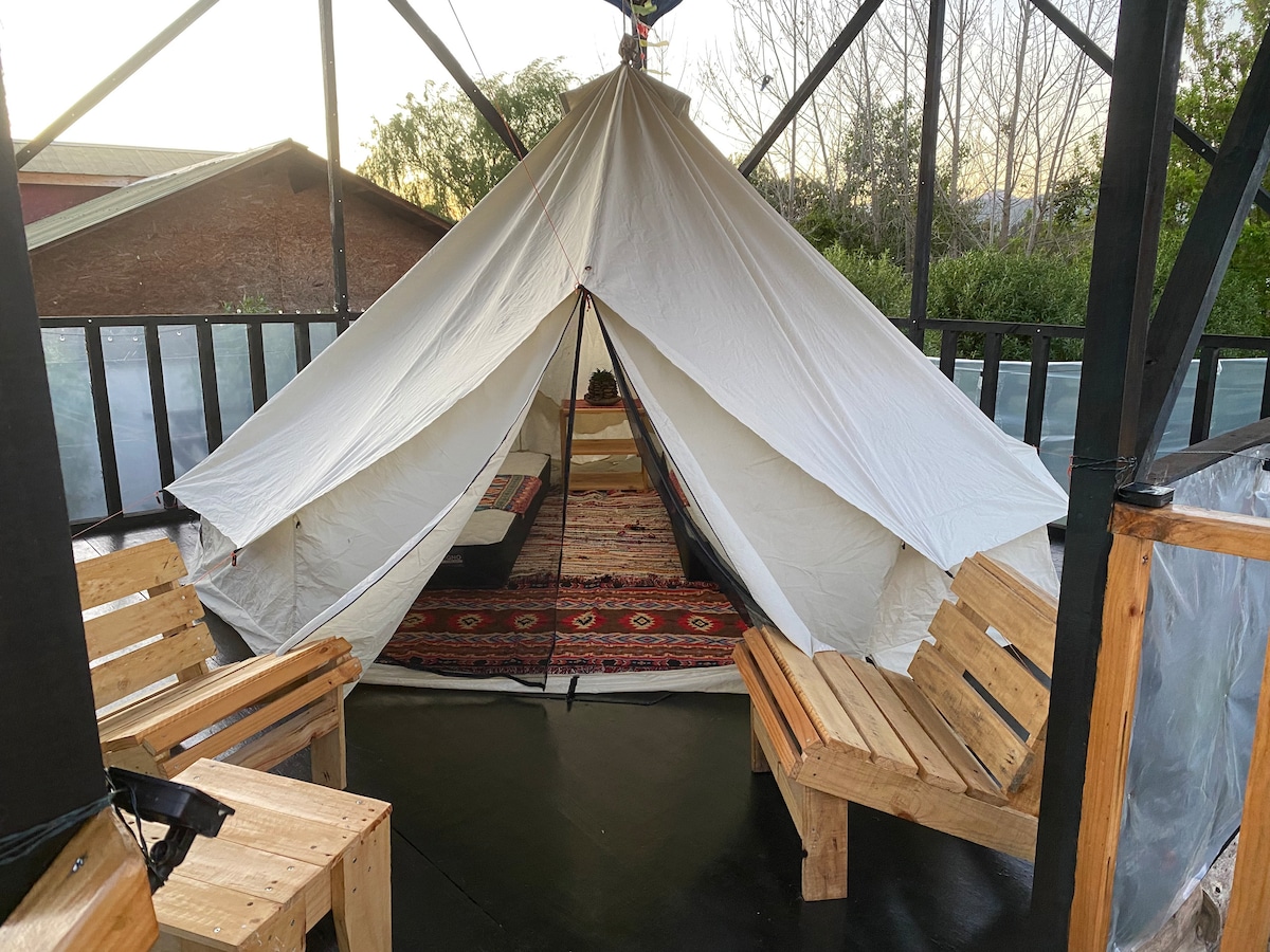 Glamping-Zelt in Paine, Chile. Umweltfreundlicher, komfortabler und ruhiger Kurzurlaub inmitten von Natur, Tieren und Schönheit. Das Zelt befindet sich auf einem nachhaltigen Bio-Bauernhof. Dies ist ein Ort für Paare, die eine Zeit der Entspannung und Verbindung zwischen ihnen und der Natur suchen. Wir bieten mehr als nur eine Unterkunft – wir bieten ein Erlebnis.