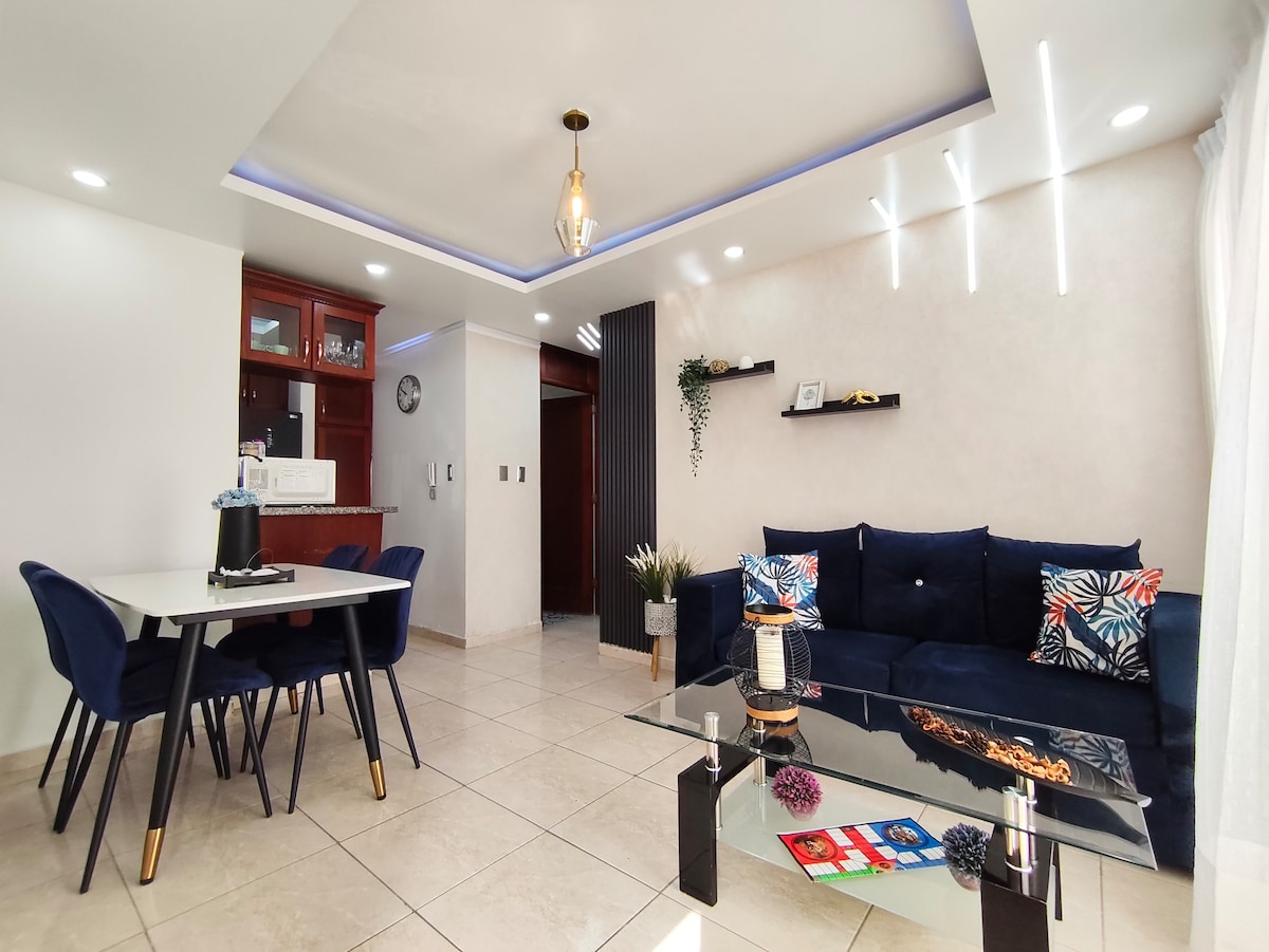 Diese neue Wohnung ist die perfekte Unterkunft für einen Urlaub mit der Familie und Freunden. Sie befindet sich 10 Minuten vom Flughafen Santiago entfernt, ist mit vielen Annehmlichkeiten ausgestattet und komplett möbliert. Es gibt 3,5 Badezimmer, 3 Schlafzimmer mit Klimaanlage und ein Gästezimmer mit einem Doppelbett, Ventilator und eigenem Badezimmer. Voll ausgestattete Küche, zwei Wohnzimmer, Klimaanlage, zwei 50-Zoll-Smart-TV, Bluetooth-Lautsprecher und zwei Parkplätze. Du kannst auch die Umgebung des Komplexes wie den Spielplatz, den Pool, den Veranstaltungsraum, den See und den Sportplatz genießen.