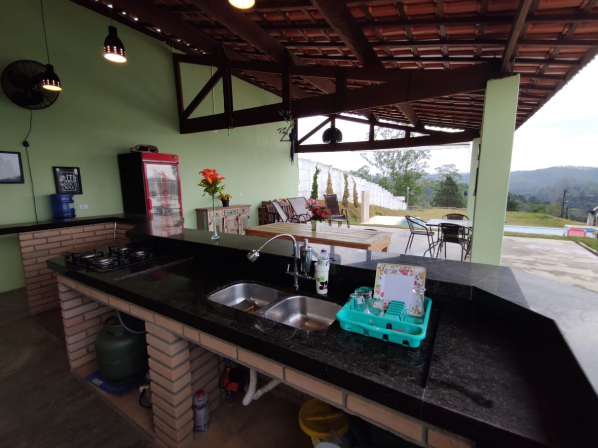 Familienhof für heiße und kalte Tage. Das Hotel liegt in Mogi das Cruzes in der Nähe der Wohnanlage Aruã. Ganz in der Nähe von São Paulo (weniger als eine Stunde über die Ayrton Senna oder Dutra). 5000 m² Gesamtfläche, verfügt über einen Kamin, Pool, Grillplatz, Sportplatz, Spielplatz. Ein Ort zum Entspannen, Energie tanken, Homeoffice und Spaß für alle Altersgruppen. Markt, Pizzeria, Tankstelle, Drogerie und Bäckerei 5 Minuten mit dem Auto entfernt. WICHTIG: - Bewusster Wasserverbrauch - Rauchen nur im Außenbereich