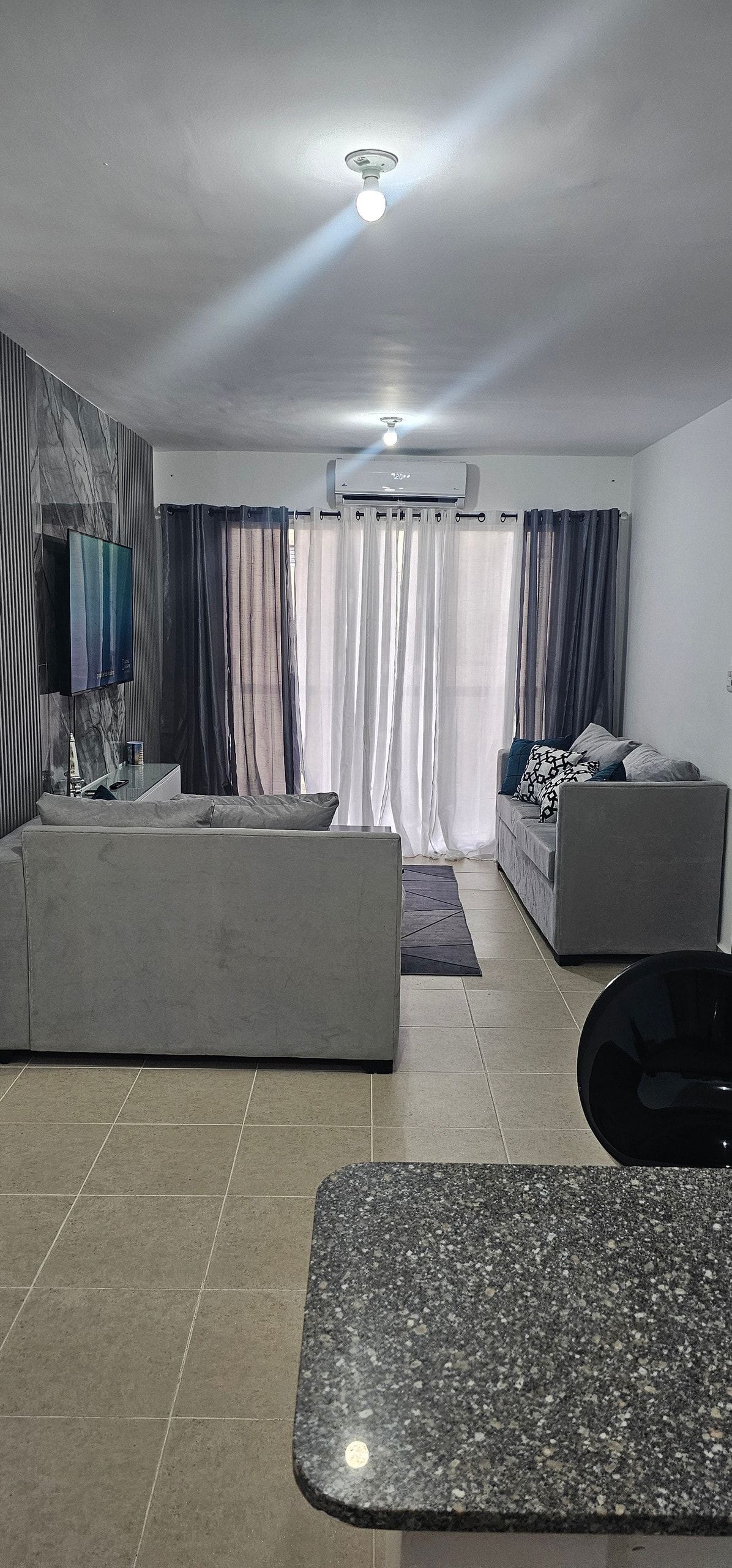 Hab Spaß mit der ganzen Familie in dieser stilvollen Unterkunft. Mit der Privatsphäre und den notwendigen Einrichtungen, um unvergessliche Momente zu haben. Sie verfügt über eine voll ausgestattete Küche, ein voll ausgestattetes Badezimmer in jedem Zimmer, wir haben Klimaanlage in jedem Zimmer, wenn es Strom gibt. Es gibt Ventilatoren in der Wand und Deckenventilatoren im Wohnzimmer. Eingabe mit einem Zugangscode # Es ist eine 4. Etage, es gibt keine Aufzüge! Aber wir bieten Hilfe mit dem Gepäck an, solange du mir vorher Bescheid gibst.
