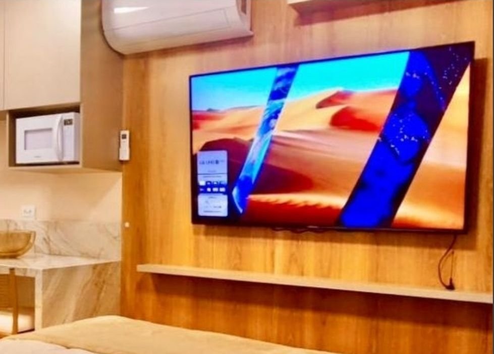 Villa-Wohnung mit Garage und Klimaanlage, mit unglaublichem Blick auf die 21. Etage, Studio in einer hochwertigen Club-Wohnung. Gemeinschaftsbereiche mit beheiztem Pool, Fitnessstudio, Coworking, Sauna, Wäscherei, Spielplatz und autonomer Markt. 4 Personen (1 Doppelbett und 1 Schlafsofa), ausgestattet mit voller Bettwäsche, entspannender Dusche, geplanter Küche mit verschiedenen Geräten und Utensilien und moderner Smart-TV, der Unterhaltung garantiert.