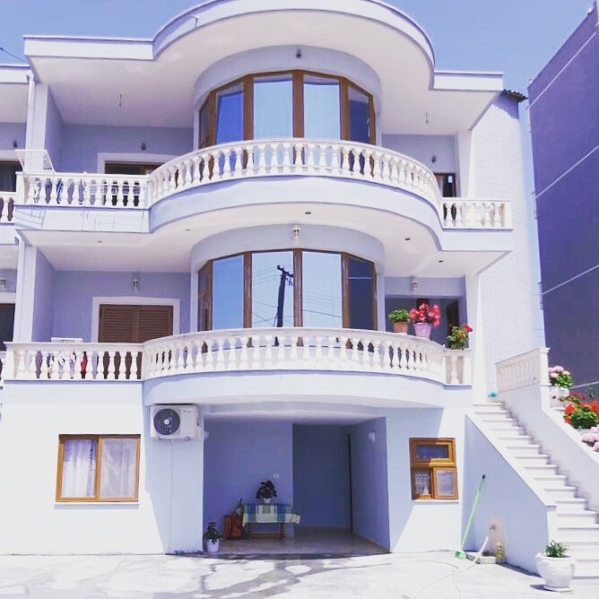 (Buche die gesamte Villa , maximale Anzahl an Gästen 20, + kostenloser Parkplatz für 6 Autos .) Die Villa Kappa befindet sich 400 m vom Zentrum und 700 m vom Meer entfernt (10-15 Gehminuten vom Strand entfernt). In der Villa findest du einen großen Garten voller Blumen, Orangen- und Zitronenbäume, und du hast die Möglichkeit, draußen an der frischen Luft einen Grill zu machen. Wir organisieren den Transport für Gäste, Abholung vom Flughafen, Touren durch Albanien (mit einem Rabatt für unsere Gäste).