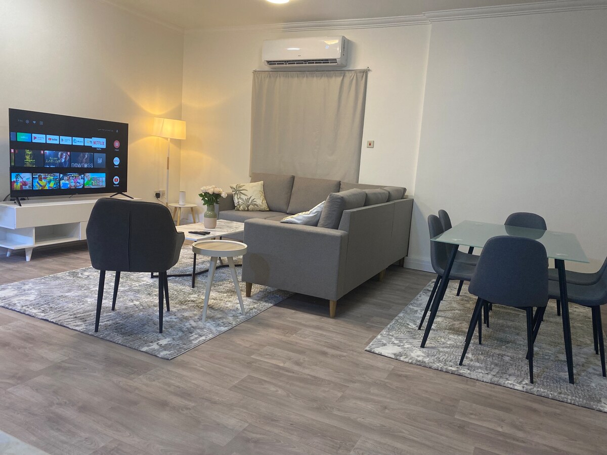 Das Design dieser Wohnung ist vom italienischen Design inspiriert und sorgfältig koordiniert, um die höchste visuelle Homogenität zu gewährleisten Außerdem wurden die besten Matratzen für das Schlafzimmer bereitgestellt, um eine tiefe Entspannung im Schlaf zu gewährleisten Außerdem wurden die besten Arten von Klimaanlagen bereitgestellt ❄️❄️ und auf Sauberkeit geachtet 🧼🫧 Und die Räumlichkeiten werden parfümiert 🌺 Täglicher Reinigungs- und Bettwäschewechsel kostenlos 🧹🧻🪥
