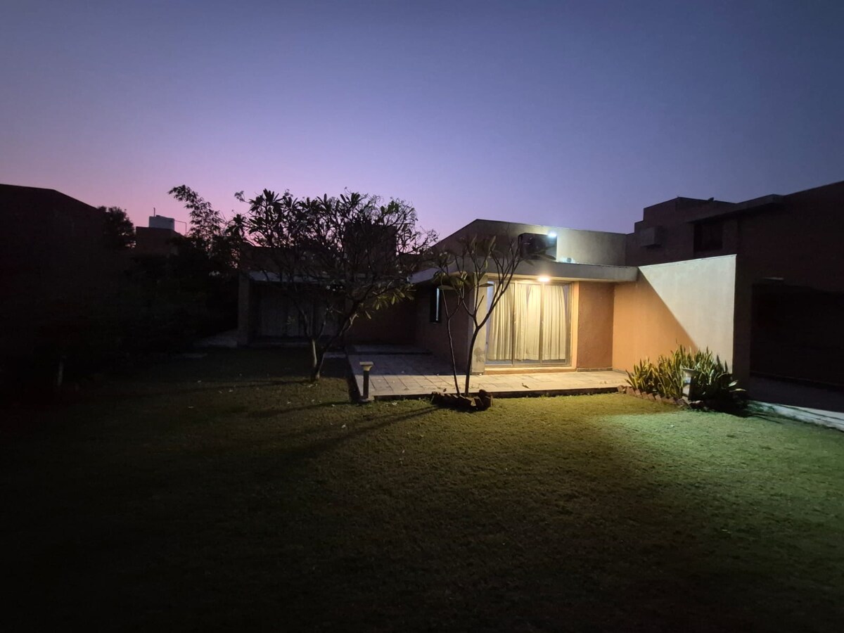 Willkommen im The Lavish Affair, einer luxuriösen 4BHK Privatunterkunft im HERZEN von Bhuj Diese geräumige Unterkunft ist das EINZIGE Airbnb der Stadt im Zentrum. Mit seiner Mischung aus modernem Interieur, Terrassen, einem schönen Terrassengarten und einem luxuriösen Wohnbereich ist dies dein perfekter Rückzugsort inmitten der pulsierenden Kultur von Kutch. Jedes Zimmer wurde durchdacht mit einem Hauch von Eleganz und lokalem Charme gestaltet, was es ideal für Familien, Paare oder Alleinreisende macht, die Komfort und Stil suchen.