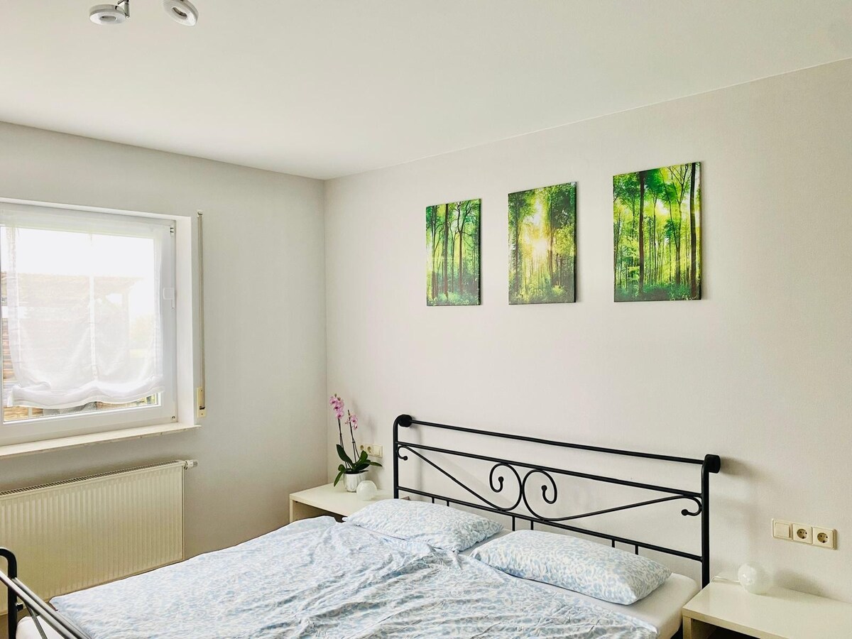 Die Ferienwohnung ist im 1. Stock unseres Einfamilienhauses, was am Ortsrand und sehr ruhig gelegen ist. In der geräumigen Küche befindet sich ein Tisch mit 2 Bänken, Herd, Mikrowelle, Wasserkocher, Kaffeefiltermaschine. Das Badezimmer ist mit einer Dusche sowie Badewanne ausgestattet. Toilette ist separat. Im Schlafzimmer ist 1 Doppelbett (1,80m) und genug Fläche für ein Babybett. Im Wohnzimmer ist eine gemütliche Sitzgruppe und noch ein Französisches Bett (1,40m).