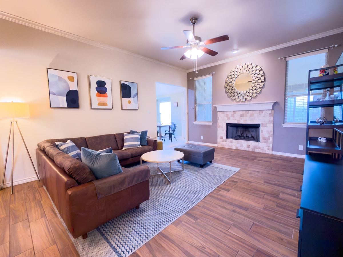 4 Schlafzimmer, familienfreundlich, 10 Gäste 👶Reisebett, Hochstuhl Genieße Unterhaltung 🎼Bluetooth in der Decke, Surround-Sound 🎱Billardtisch 🎲Brettspiele 🔥Feuerstelle 👉Spielset 👉Grill im Freien 👉Voll ausgestattete Küche 👕Waschmaschine/Trockner 🚗10 Min.👉 Randolph 🚗30 Minuten👉 Six Flags🎡 🚗45 Minuten👉 Seaworld 🚗30 Minuten👉 Downtown San Antonio 🚗25 Minuten👉 New Braunfels/Schlitterbahn/Tubing 🚗30 Min.👉🛫 SAX 5 ⭐„Alles war super!“ Füge mein Inserat zu deiner Wunschliste hinzu, indem du ❤ in der oberen rechten Ecke klickst.