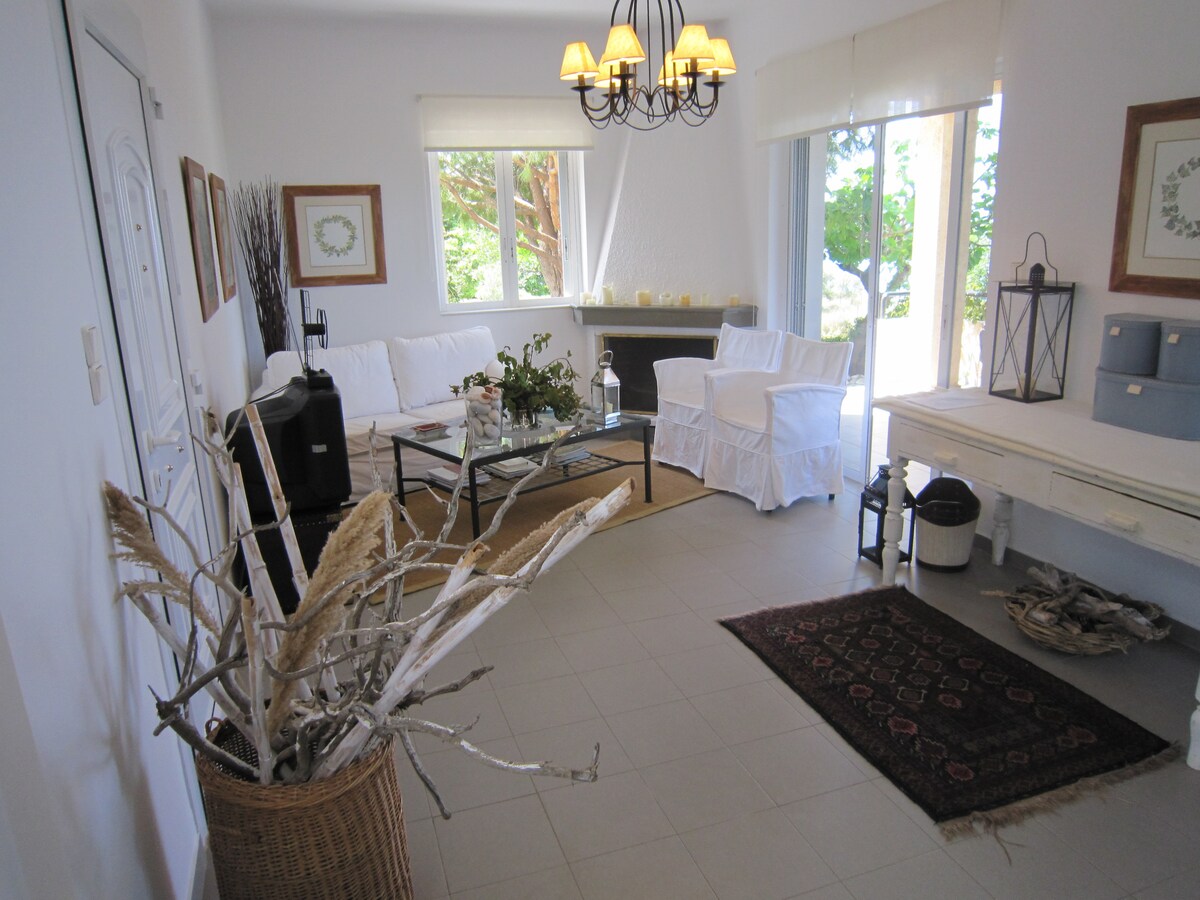 Consisted of 3 bedrooms, 2 bathrooms, connected with a fully equipped kitchen, living-dining room with access to the private terrace and the pool area, where the guests can enjoy their breakfast/lunch/dinner or their refreshments and spirits in the evening, with a marvellous views to the valley that ends overlooking the open sea. A private bedroom with a queen-size double bed on the ground floor, 2 bedrooms upstairs, one with a queen-size double bed and another with 2 single beds