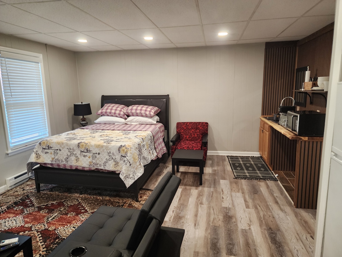 Raven's Den ist eine große Studiowohnung mit einem Queensize-Bett, einer voll ausgestatteten Küche und einer extra tiefen Badewanne. Es ist ein offener Raum, der nach Bedarf konfiguriert werden kann, mit zwei „Luftseiden“-Hängematten, die gleichzeitig als Schaukeln dienen. Sie befindet sich im Herzen von Downtown Troy, in der Nähe von RPI, EMPAC, The Troy Music Hall, The Farmers Market und dem Takk House. Egal, ob du einen gemütlichen romantischen Kurzurlaub oder einfach nur einen sauberen, frischen Ort zum Schlafen brauchst, Raven's Den könnte für dich geeignet sein.