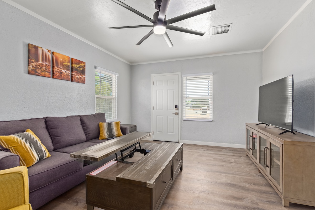 Du bist in der Nähe von allem, wenn du in diesem zentral gelegenen Haus übernachtest. Nur wenige Gehminuten von der Innenstadt von Mesa und der Valley Metro Light Rail entfernt. In der Nähe des Community Centers, der Spring Trainingstadien, hochwertiger Restaurants und mehr. Smart-TV im Wohnzimmer und im Hauptschlafzimmer. Sehr komfortable Tempur-Pedic-Betten, Kissen und weiche Bambuslaken für einen erholsamen Schlaf. Voll funktionsfähige neue Küche. Elegant renoviertes Badezimmer. Wir wünschen dir einen angenehmen Aufenthalt!!