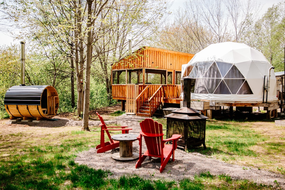 Supreme Glamping ist ein ganzjähriges Luxusziel. Wir haben 2 Kuppelvermietungen an unserem Standort. Schau dir unsere Kiefernkuppel an! Die Gäste können eine PRIVATE SAUNA, EINEN PRIVATEN GROSSEN WHIRLPOOL und einen Kamin in jeder Kuppel genießen. Unser Kuppelverleih bietet ein unvergessliches unterhaltsames und einzigartiges Erlebnis! Die Kuppeln verfügen über ein stilvolles, einzigartiges Interieur und übergroße Fenster mit Panoramablick, die eine nahtlose Mischung mit der Natur schaffen. Diese Kuppelunterkünfte sind eine ideale Wahl für einen Familienurlaub oder einen romantischen Kurzurlaub. Wir erlauben Kinder😊