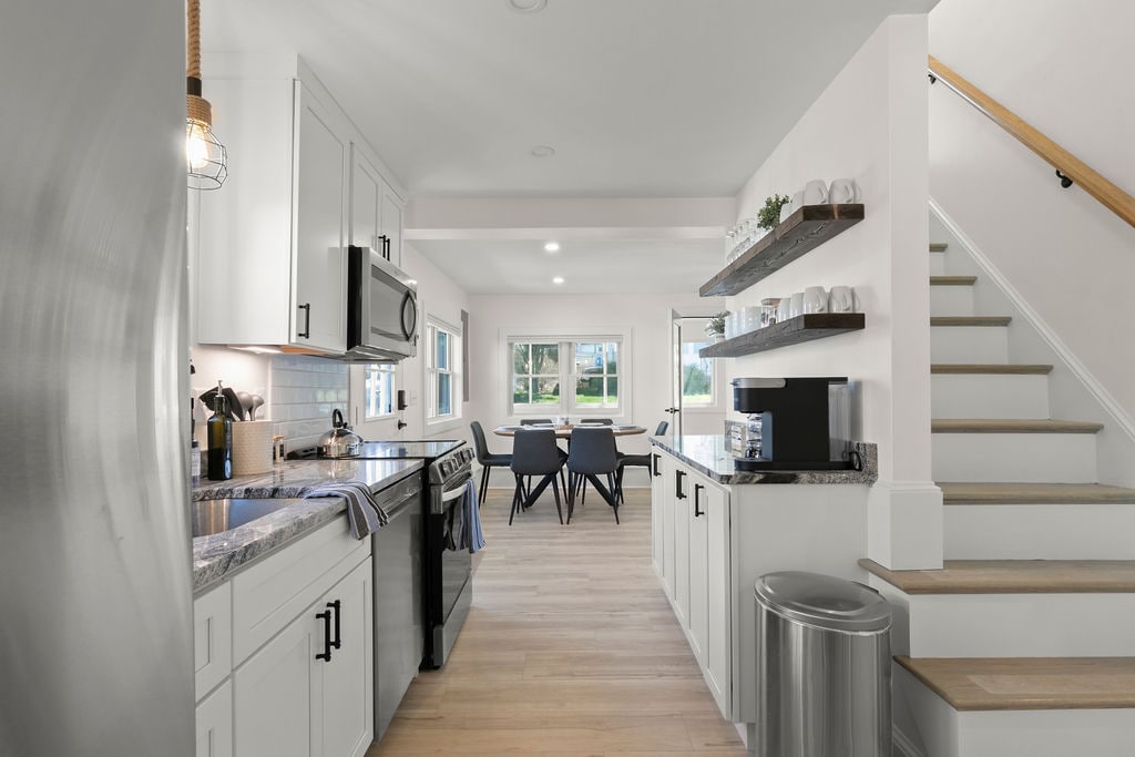 Dieses einstöckige Haus auf dem Buttermilk Way ist genauso beruhigend wie der Name der Straße, auf der es sich befindet. Die weißen Wände, die großen offenen Fenster und die Terrasse im Hinterhof mit Blick auf die Bucht sind perfekt für einen entspannten Kurzurlaub. Ausgestattet mit drei Schlafzimmern, zwei Badezimmern, einer voll ausgestatteten Küche und einem Gemeinschaftsraum sorgt dies für einen komfortablen und dennoch funktionalen Urlaub.