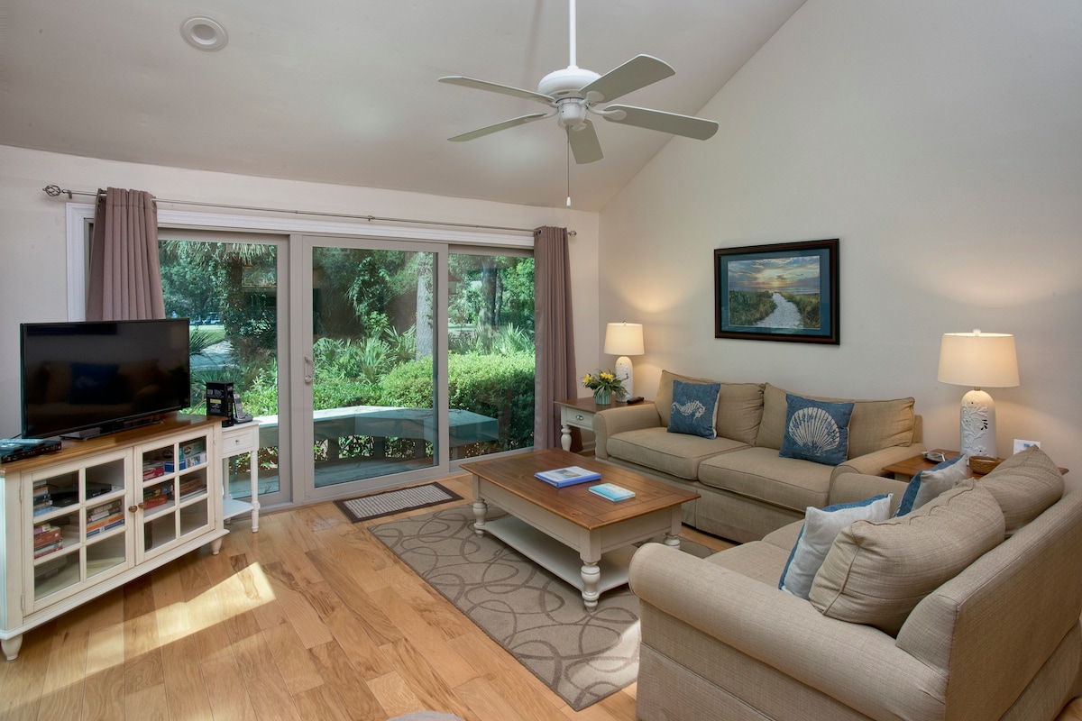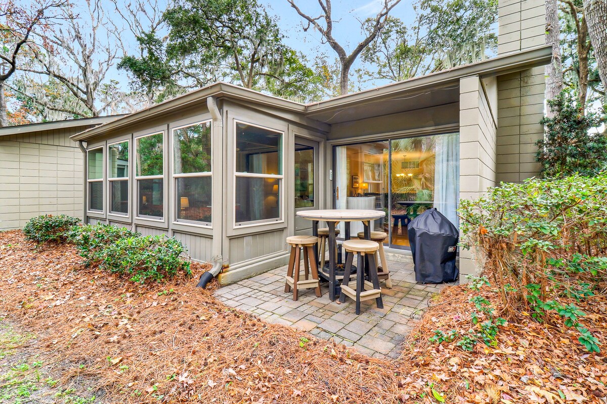 Wunderschön im modernen Strandstil renoviert! Mit wunderschönen neuen Böden, neuen Möbeln, Bettwäsche und modernisierten Bädern wartet diese stilvolle Küstenvilla nur darauf, dass du dich entspannst und alles an Sea Pines und HHI genießt. Von der atemberaubenden Küche bis zum durchdachten Arbeitsbereich und der erweiterten Terrasse mit Grill bietet diese Villa mit zwei Schlafzimmern und zwei Bädern bequem Platz für sechs Erwachsene. Diese Unterkunft ist haustierfreundlich, aber dennoch sauber und gut ausgestattet und bietet eine der besten Lagen in Sea Pines.