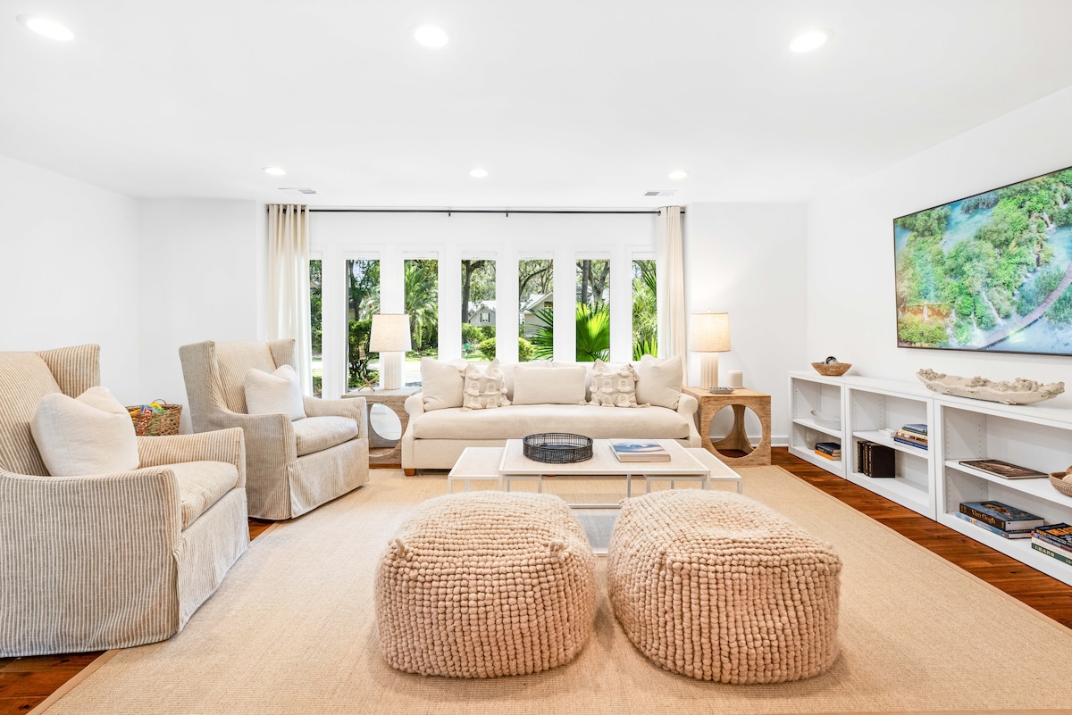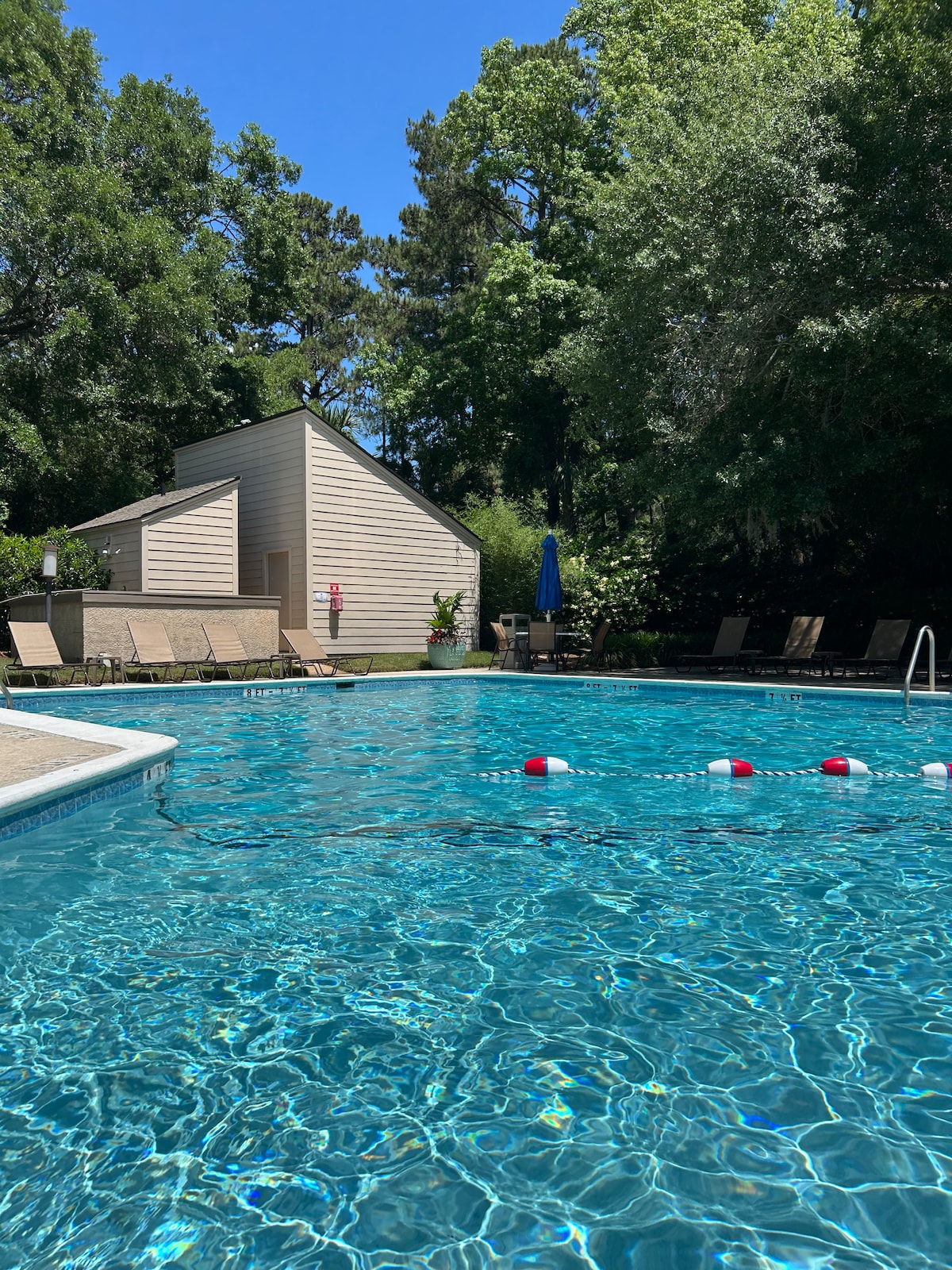 Das 185 m² große, einstöckige Haus in Privatbesitz befindet sich auf einem bewaldeten Eckgrundstück in günstiger Lage am Eingang des Sea Pines Resorts. Dieses Haus mit 3 Schlafzimmern und 2 Bädern wurde im August 2020 umfassend renoviert und verfügt über eine einladende, französisch inspirierte Küstenausstattung für ein entspannendes, gemütliches Ambiente. Das Chalet „Sea La Vie“ liegt nur wenige Gehminuten von Lebensmittelgeschäften, Geschäften und Restaurants entfernt. Eine kurze Fahrt oder Radtour bringt dich zum privaten Beach Club, der ein Restaurant und eine Bar am Meer, gehobene Einrichtungen und breite Strände beherbergt. Bienvenue!