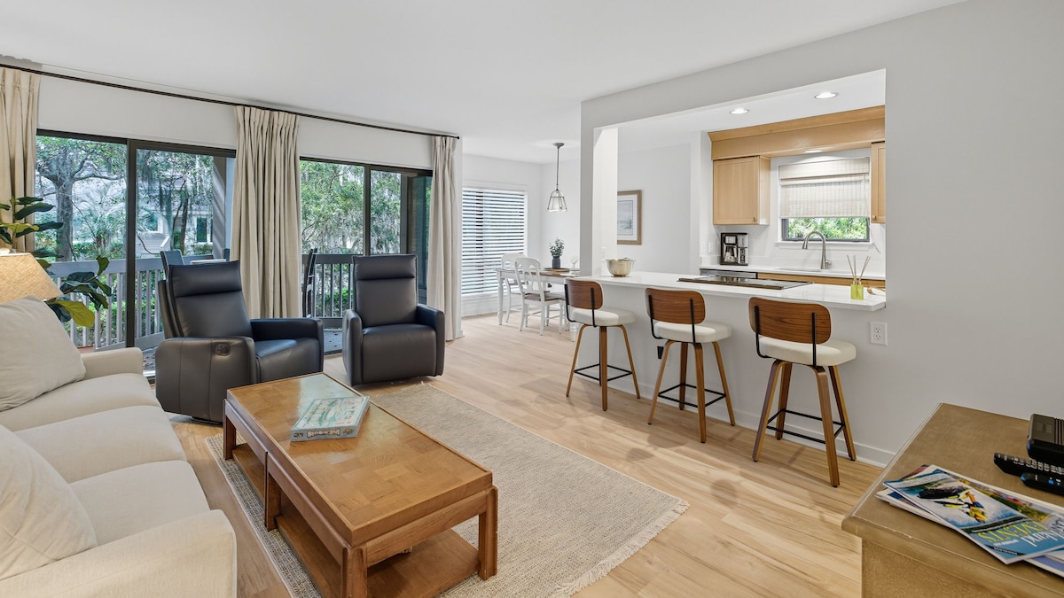 Entfliehe in unser familienfreundliches Zuhause im Herzen von Sea Pines auf Hilton Head Island. Unser Haus verfügt über neue Fußböden, Fenster und Möbel, einen großen Hauptwohnbereich mit einem eigenen Arbeitsbereich und eine voll ausgestattete Küche. Genieße das Essen im Freien mit Feuerstelle im Tisch und herrlichem Blick auf die weitläufige Lagune. Zentral in Sea Pines gelegen, in der Nähe von Harbour Town und dem Beach Club. Wir helfen dir, stressfrei Fahrradverleihe, aufregende Wasseraktivitäten und Zugang zu erstklassigen Golfplätzen zu buchen.