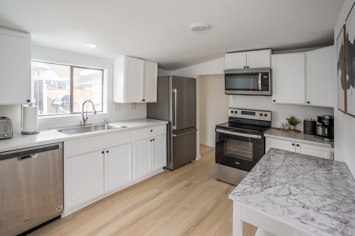 Genieße Long Beach in unserem schönen Zuhause, das nur fünf Gehminuten vom Strand entfernt liegt. Möbliert, damit du alles hast, was du brauchst, um deinen Aufenthalt so angenehm wie möglich zu machen. Genieße unsere vielfältige Küche, die mit allem ausgestattet ist, von Töpfen und Pfannen bis hin zu Mixern und Kaffeemaschinen. Unsere Unterkunft ist auch gut für Kinder ausgestattet, mit Spielzeug und Hochstühlen und allem dazwischen. Sei versichert, dass wir vor und nach jedem Gast umfangreiche Hygienemaßnahmen ergreifen.