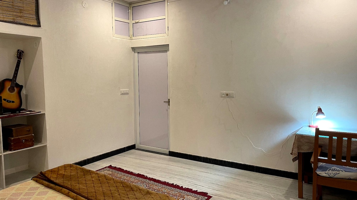 Willkommen in der Lake Pichhola Villa, einem geräumigen Rückzugsort im ersten Stock mit zwei luftigen Schlafzimmern, die jeweils mit Klimaanlage und eigenem Bad ausgestattet sind. Ein Durchlauferhitzer in einem größeren Raum versorgt beide mit heißem Wasser. Entspanne dich in der großen Halle, entspanne dich auf dem nach Osten ausgerichteten Balkon mit Pflanzen oder genieße den Zugang zur Terrasse im zweiten Stock. Die Küche ist bescheiden für Tee, Kaffee oder leichte Snacks ausgestattet. Mit 100-Mbit/s-WLAN und zuverlässiger Notstromversorgung ist es ein idealer Aufenthalt für Familien, Freunde oder mobile Arbeitende, die Komfort in der Nähe des charmanten Udaipur suchen.