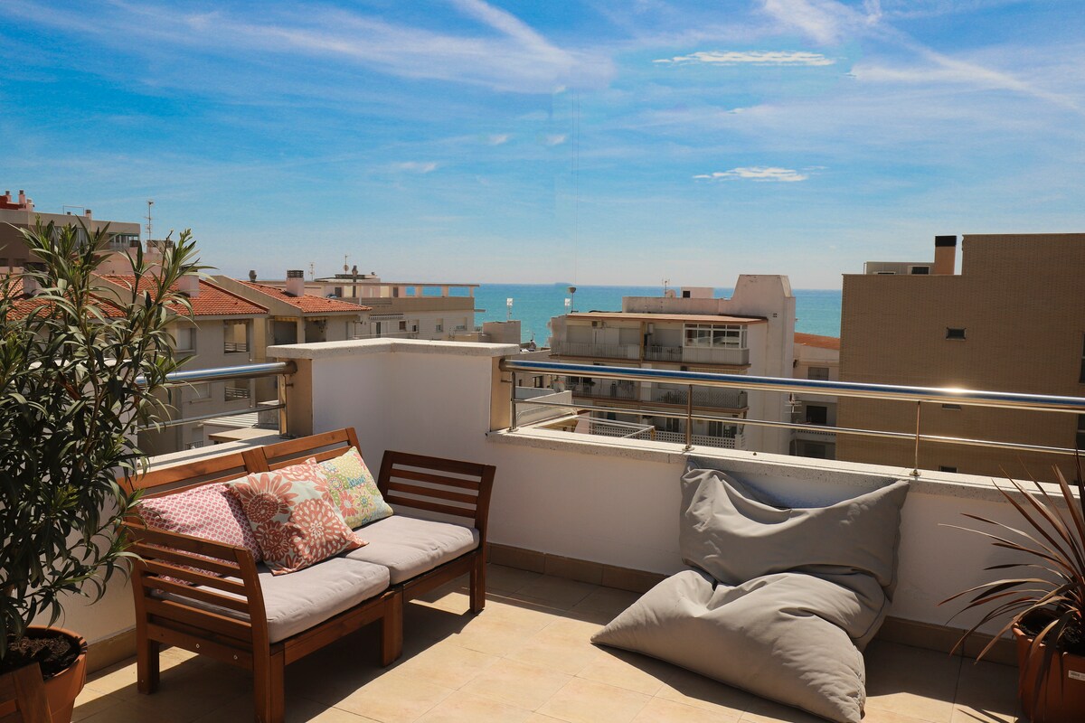Übernachte in dieser einzigartigen Unterkunft und genieße einen unvergesslichen Besuch. Duplex-Penthouse nur 100 m vom Strand entfernt, geräumig, hell, mit einem coolen und mediterranen Stil eingerichtet, Sonnenterrasse mit Blick auf das voll ausgestattete Meer, Grill, Parkplatz, WLAN, Klimaanlage, Aufzug. Alle Arten von Geschäften und Dienstleistungen sind in der Nähe. Ideal für Familien mit Freunden oder Fernarbeit. Von der Terrasse aus kannst du wunderschöne Sonnenuntergänge betrachten. Wir warten auf dich!!