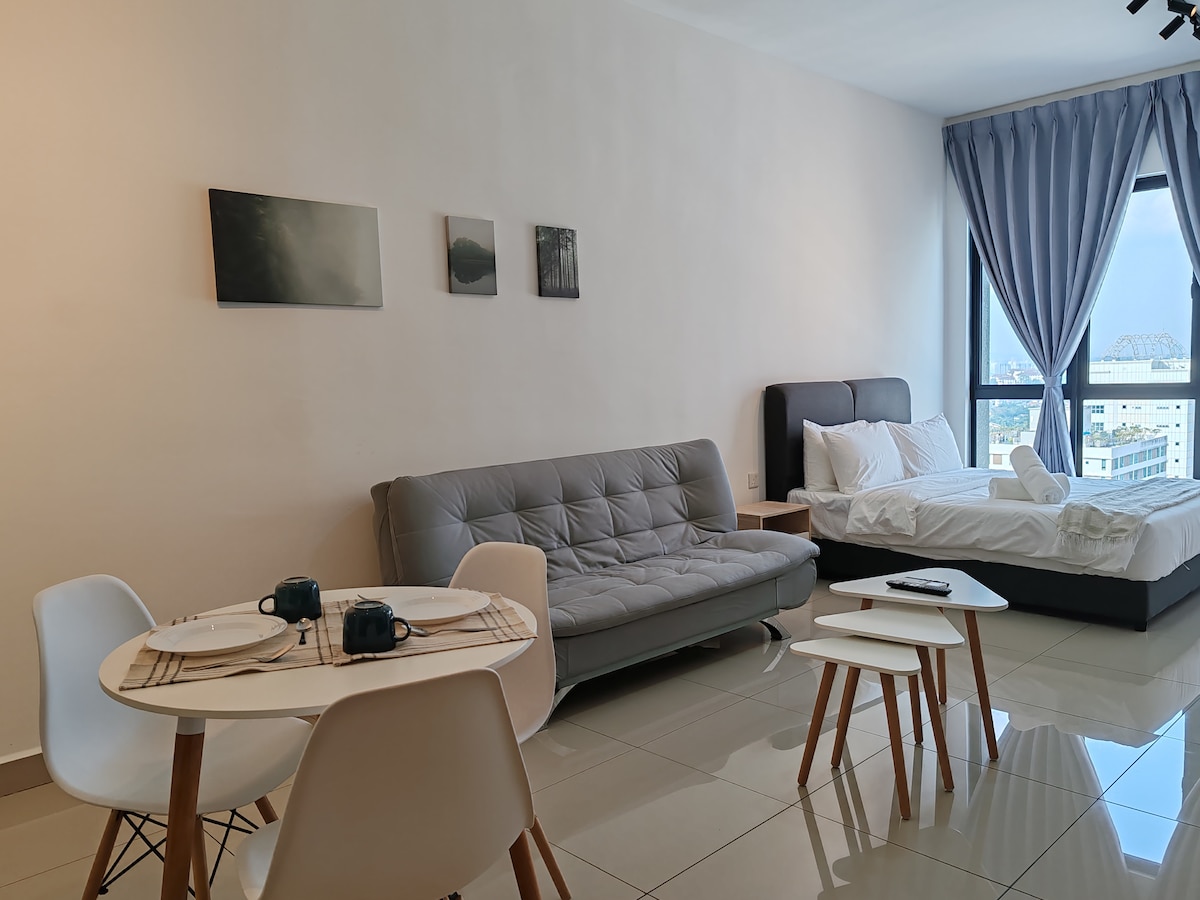 Erlebe urbanen Komfort vom Feinsten in unserem stilvollen Studio in Shah Alam. Mit einem geräumigen Wohnbereich und einem atemberaubenden Blick auf die Skyline der Stadt bietet dieser gemütliche Rückzugsort alles, was du für einen unvergesslichen Aufenthalt benötigst. Entspanne dich auf dem Schlafsofa, genieße Unterhaltung auf dem 65-Zoll-Smart-TV und bereite deine Lieblingsmahlzeiten in der gut ausgestatteten Küchenzeile zu. Perfekt für Alleinreisende oder Paare, die in das pulsierende Stadtleben eintauchen möchten. Buche noch heute deinen Aufenthalt! 🌆