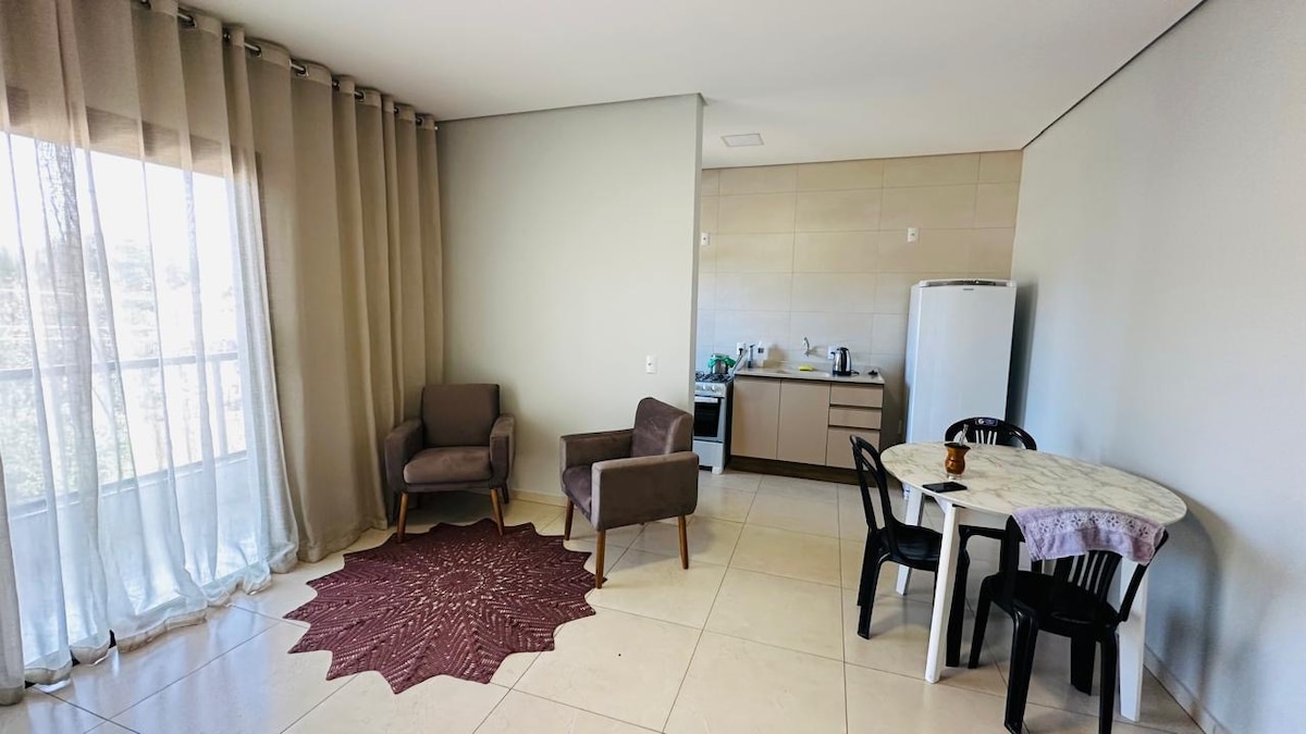 Komplett geplante Wohnung im Zentrum von Passo Fundo, in der Nähe des Krankenhauses Hospital de Clínicas, des Krankenhauses São Vicente de Paulo, der FGV und des Einkaufszentrums. Vollständig. Es verfügt über eine Garage, 2 Klimaanlagen warm/kalt im Schlafzimmer und im Wohnzimmer, 1 extrem komfortables Boxspringbett sowie ein Sofa, das sich in ein Schlafsofa für Paare verwandeln lässt, und eine zusätzliche Doppelmatratze. WLAN, 2 Smart-TVs, einer mit 40 Zoll im Wohnzimmer und einer mit 32 Zoll im Schlafzimmer, Grill mit Rost, komplette Küche, andere notwendige Gegenstände.