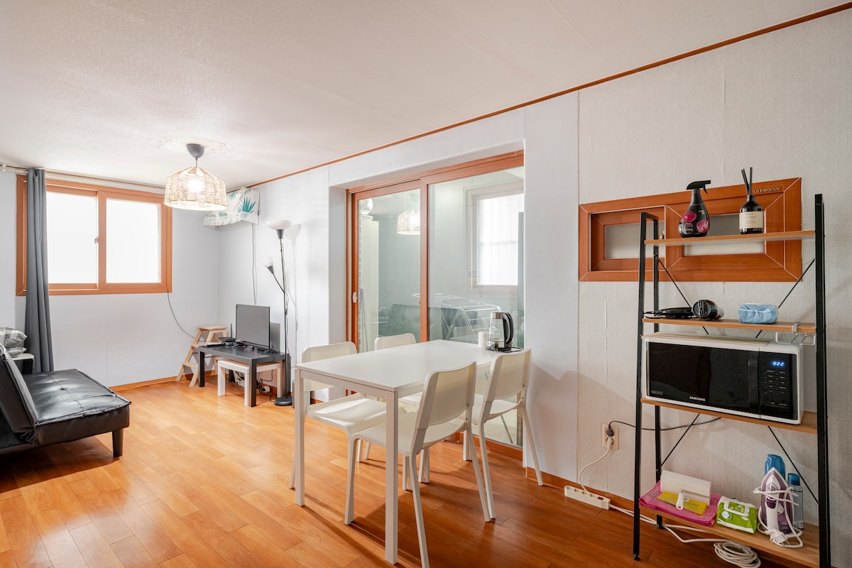 Es ist eine geeignete Unterkunft für Reisen mit Freunden oder Familien. * Hongik University Station 500m/7 Minuten zu Fuß/Kostenlose Gepäckaufbewahrung verfügbar! * 3. Stock. Kein Aufzug. Kostenloses WLAN, ein Parkplatz vorhanden, man muss den Hügel hinaufgehen. Digitales Türschloss ohne persönlichen Self-Check-in. Wir werden dich bei der Bestätigung deiner Buchung unterstützen. Du kannst standardmäßig bis zu 2 Personen schlafen. Empfohlen für Familienreisen und Freunde. Alles, was du für ein einfaches Leben brauchst. Handtücher, Toilettenpapier, Duschutensilien, Geschirr, Smartphone-Ladegerät, Waschmaschine, Fußbodenheizkessel, Klimaanlage usw. * Es gibt keine Zahnbürsten, Rasierer oder Kosmetika, also bring sie bitte mit. * Von der Ausfahrt 4, 6 und 7 der U-Bahn-Station Hongdae sind es 7 Gehminuten. Es ist in der Nähe der U-Bahn und der Bushaltestelle Donggyo Samgeori. Es gibt einen Supermarkt in der Nähe, ein köstliches ganzes Hühnerrestaurant, ein pummeliges Hühnerrestaurant, Lotteria, ein Café, ein Restaurant, einen Schönheitssalon usw. Lotte Mart und Olive Young sind verfügbar. Du kannst bequem und sicher übernachten.