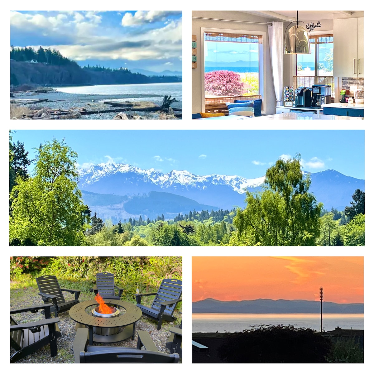 Suchst du eine ruhige Zuflucht mit einer atemberaubenden Aussicht auf die Olympischen Berge? Unser charmantes Ferienhaus hat einfach alles! Entspanne dich in Abgeschiedenheit mit dem gleichen Komfort wie zu Hause, umgeben von einem charmanten Äußeren, einer parkähnlichen Umgebung und einer Außenterrasse mit Whirlpool, Feuerstelle und Grill. Wenn du bereit bist, auf Erkundungstour zu gehen, bist du nur einen Steinwurf vom Olympic-Nationalpark, dem Pazifischen Ozean, dem Hoh-Regenwald, der Dungeness-Spit, Lavendelfarmen, Golfplätzen, Wander- und Radwegen, einem Casino und Victoria BC mit der Fähre entfernt.