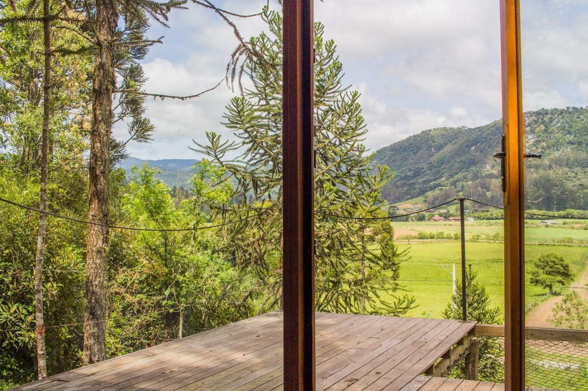 If you are looking for a cozy, comfortable and very private cabin with a beautiful view of the mountains, welcome to Monte Canudo Refúgio Urubici! We are located in Serra do Corvo Branco, on a beautiful property with many araucaria trees and a private stream. Our cabin is an invitation to contemplate nature. Relax in the hot tub while admiring the stars, make a fire on the ground, experience mornings of mist and frost, feel the peace of our refuge.