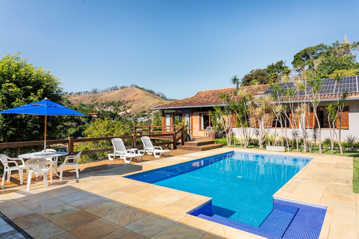 Tolle Lage, in einer Wohnanlage, geräumiges Haus in Itaipava, mit einem Freizeitbereich, der mit einem privaten Pool, einem Grill, einem Holzofen und einem Kamin ausgestattet ist. Das Haus verfügt über 5 Schlafzimmer, davon 2 Suiten. Unser Haus verfügt über eine großartige offene Küche, komplett mit Mikrowelle, Kühlschrank mit Gefrierfach, Sandwichmaker und Kaffeemaschine. Wohnzimmer mit Balkon und Terrasse, mit wunderbarem Wohnzimmer, ausgestattet mit Kabel-TV. Klimaanlage in allen Zimmern. WIR SIND PETFRINDLY! Wir akzeptieren KLEINE Hunde.