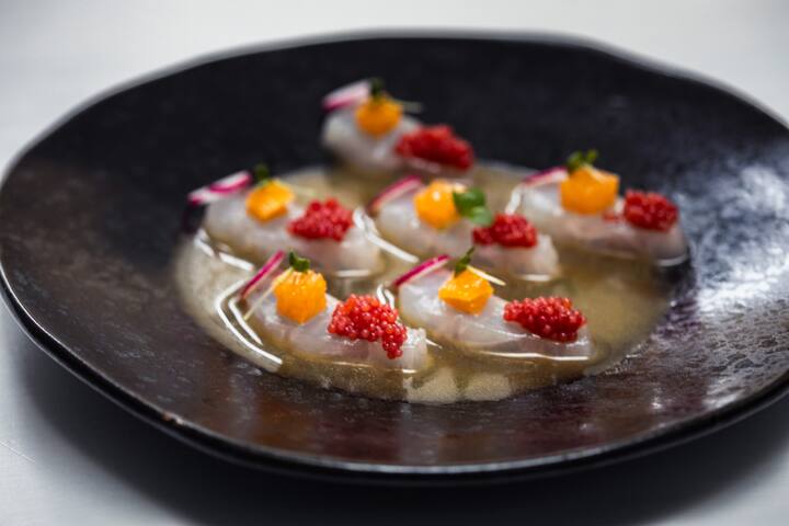 - Hamachi Crudo, Mango, Sommertrüffel, Zitrusvinaigrette