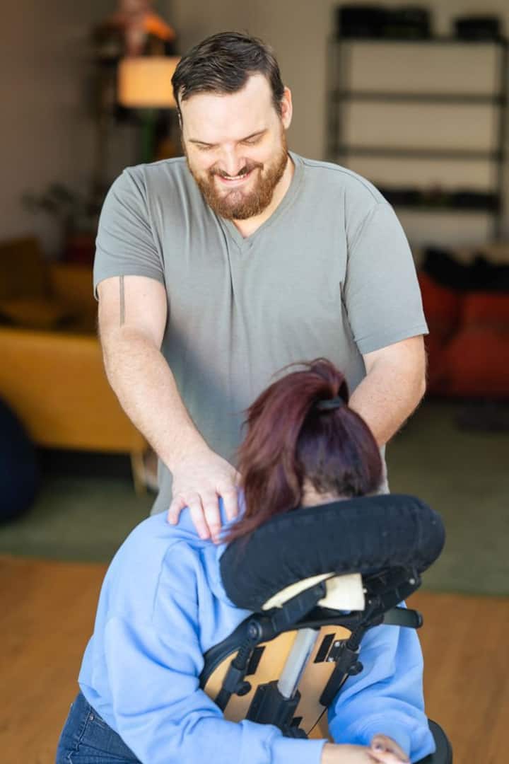 Buche 2,5 Stunden Massagetherapie, entweder Stuhl oder Tisch, nach Belieben! Die Sitzung kann auf beliebig viele Personen aufgeteilt werden!