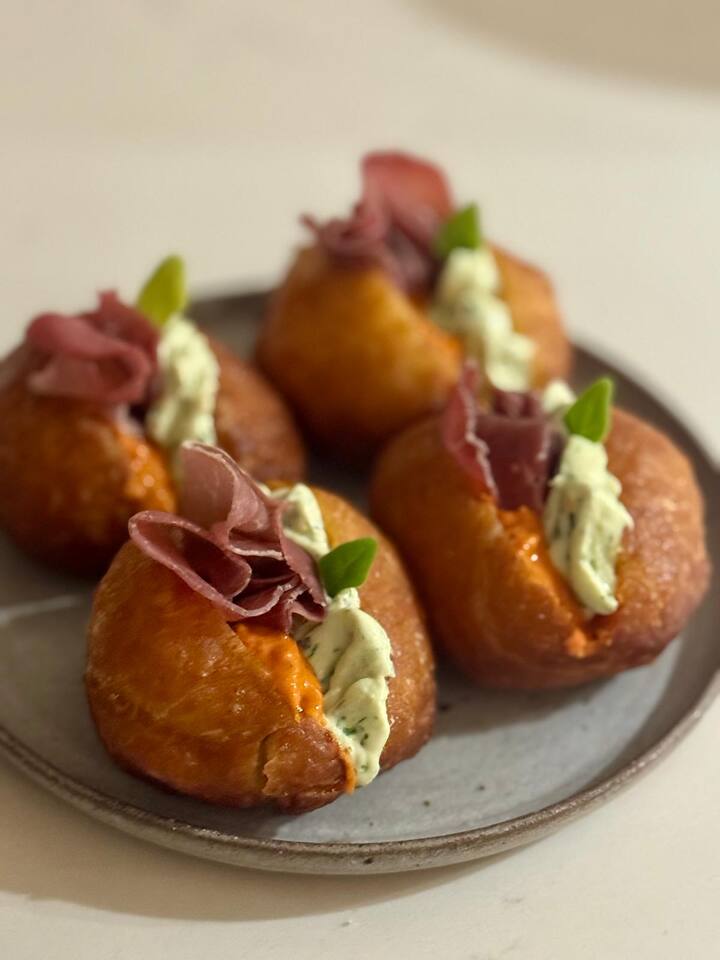 Mundgerechte und handliche Köstlichkeiten – Krabben-Donuts, Erbstück-Tomaten-Törtchen, Financiers mit weißer Schokoladenganache, perfekt für zwanglose Zusammenkünfte oder Feiern. Essen, mischen, wiederholen!