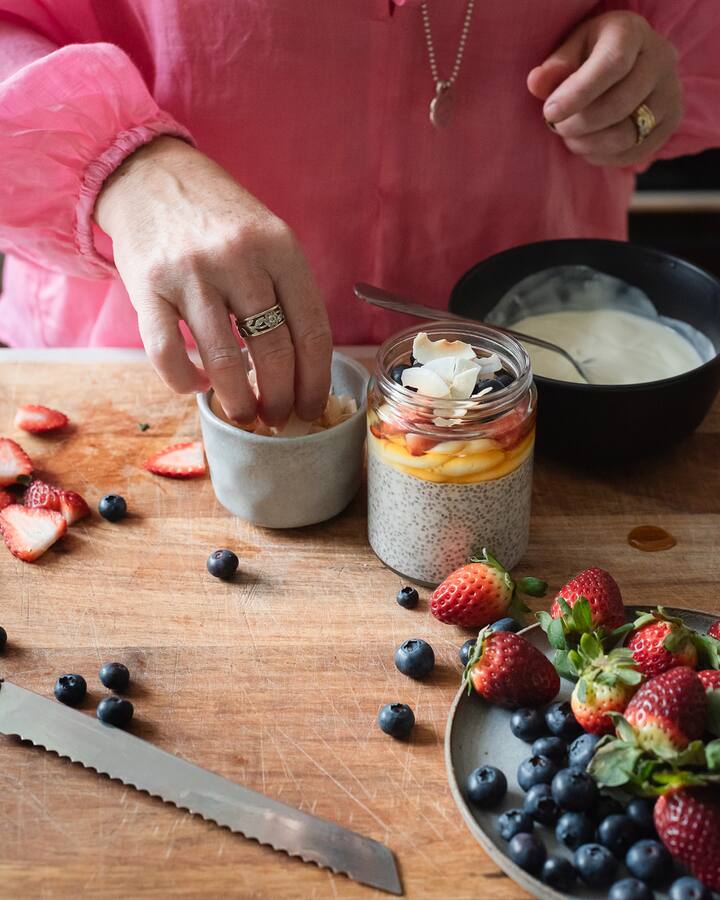 Ein entspanntes Brunch-Fest mit einer saisonalen Auswahl an frisch gebackenen süßen und herzhaften Köstlichkeiten, nahrhaften Chia-Schoten oder dekadenten Frühstücks-Panna-Cotta – perfekt für langsame Morgen und besondere Anlässe.