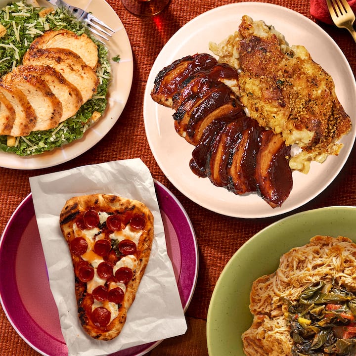 Alltägliche Grundnahrungsmittel, neu interpretiert von Top-NYC-Köchen – mit John DeLucies Pepperoni Naan Pizza (mit heißem Honig-Drizzle) und gegrilltem Hühnchen-Kohl-Caesar (mit hausgemachten italienischen Croutons), Chris Ratels BBQ-Hühnchen (mit Pfeffer-Jack-Mac und Käse) und James Grodys Pulled BBQ-Hühnchen (mit zartem Blattkohl). Enthält eine von jeder Mahlzeit.