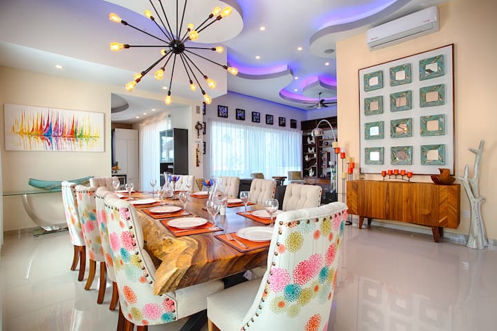 Professionelles Fotoshooting für Unterkünfte mit 5 bis 6 Schlafzimmern. Es enthält Fotos mit Werbung und im Architekturstil der Innenräume, Außenbereiche und Gemeinschaftsräume.