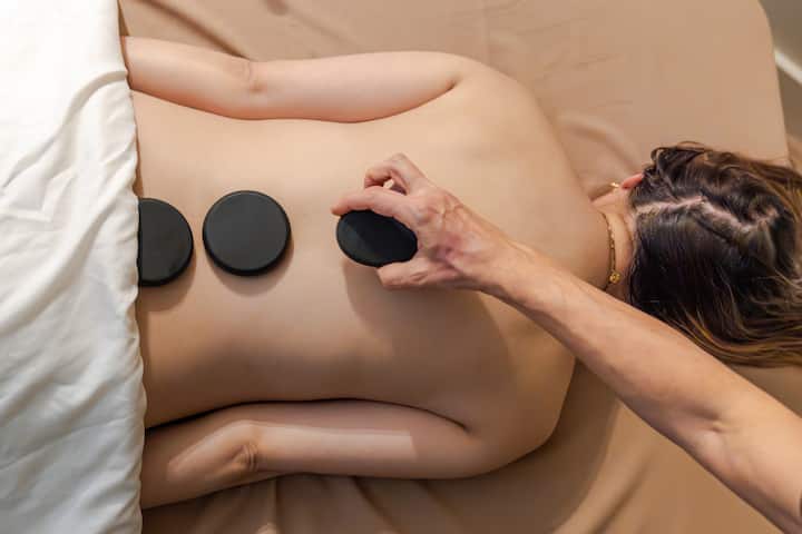 Mineralstoffreiche Thermotherapie. Bei dieser regenerierenden Behandlung kommen handgefertigte Basaltsteine zum Einsatz, die auf die optimale Temperatur erhitzt werden, um die Haut mit 84 essenziellen Mineralien zu versorgen. Die Wärmeenergie dringt tief in das Muskelgewebe ein, wodurch die Durchblutung erheblich angeregt wird und ein Zustand tiefer, alkalischer Entspannung erreicht wird.