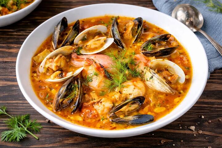 Genieße ein Meeresfrüchte-Erlebnis mit einer Auswahl an frischen Suppen und Salaten, einem Hauptgericht deiner Wahl aus exquisiten Fisch- und Meeresfrüchteoptionen und einem köstlichen Dessert, um das Ganze abzurunden.