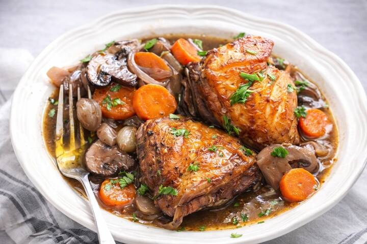 Gönne dir eine französische Gaumenfreude und wähle zum Auftakt zwischen frischen Salaten oder herzhaften Suppen. Wähle ein Hauptgericht aus: klassischer baskischer Kabeljau, Coq au vin, Lammkoteletts, glasiertes Hähnchen oder eine Tomatentarte. Zum Abschluss gibt es alle Desserts inklusive: Kirschkuchen, Apfelkuchen und Vanilleeis mit frischem Obst.