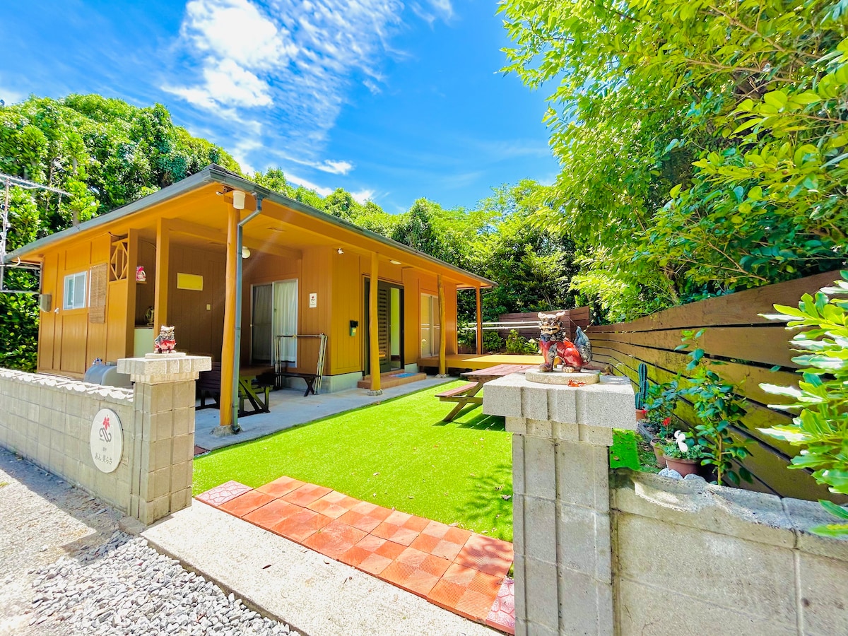 ★ Ocean-view ★ whole house for yourself (82 ㎡+ terrace) ★ from Naha Airport by car: 1.5 H ★ private beach by walk: 1 min ★ freeWi-Fi ★ BBQ available (charges apply:3,300 yen. Please contact us in advance) ★ free onsite parking space for 1 cars. ★ 15 minutes by car to Churaumi Aquarium / Fukugi-lined trees in Bise BBQ in the front yard possible (with lamps for the night). *On Sesoko Island, it is a custom to build graves facing the sea, and one can be found on the road leading to the house.