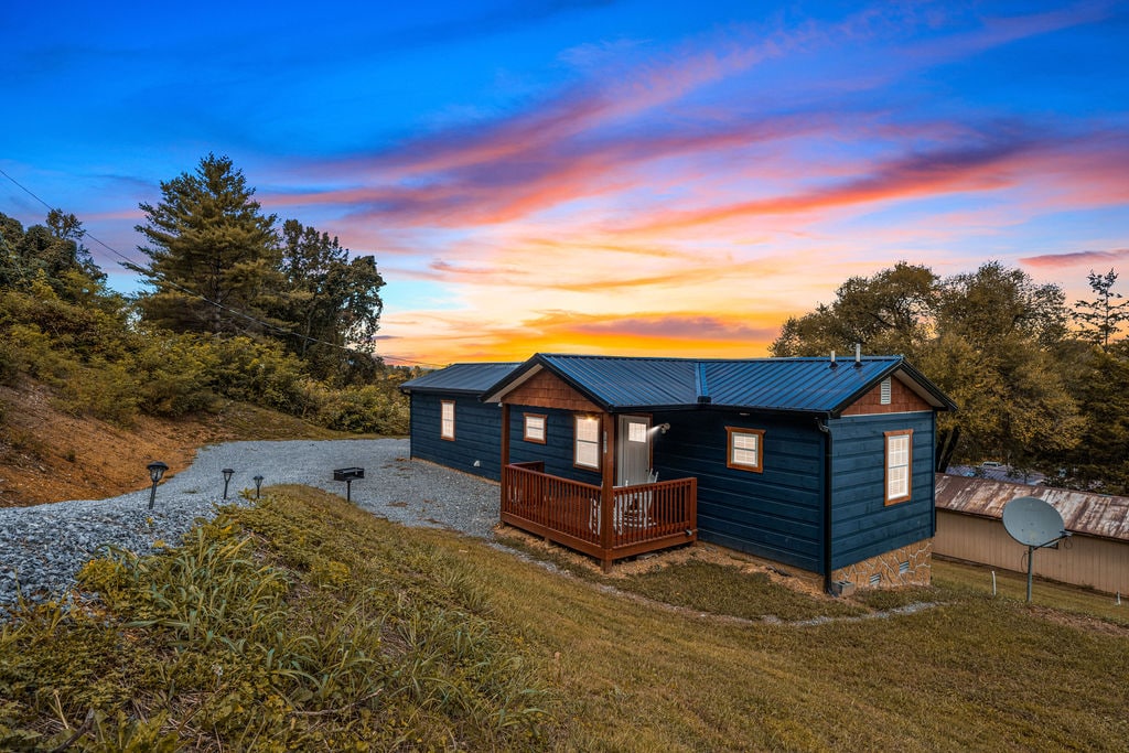 WILLKOMMEN in Cherokee Sunset SEHR PRIVATE 1/1 KING Studio-Hütte auf dem GIPFEL des Berges in Wears Valley! Atemberaubende Aussicht. Direkt an der 321 Wear Valley Road. Unsere Hütte ist eine der besten Hütten auf Ravens Den mit Blick auf das Wears Valley. Spannende 4x4-Anfahrt. 4x4 ist nicht erforderlich, aber die Straße ist an einigen Stellen steil. SPEKTAKULÄRE Aussicht von der umlaufenden Terrasse! Großer Whirlpool, die Hütte bietet Gästen einen Whirlpool sowie eine separate Dusche, einen Gaskamin, einen Gasgrill, WLAN, Smart-TVs! Haustierfreundlich