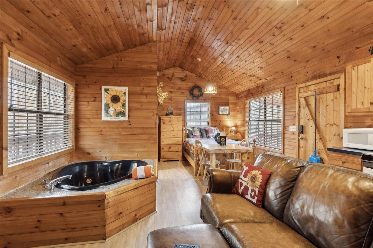 Take it easy at this unique and tranquil getaway. Little Cabin on the Creek offers a secluded setting to relax and get away from it all, perfect for the couple looking for a romantic getaway. This quaint one-room cabin is a picturesque setting in the beautiful Smoky Mountains. At night, snuggle up to each other by the fire and enjoy the serene sound of nature or relax in the hot tub. In this setting, you will feel like you have gone back to a simpler time.