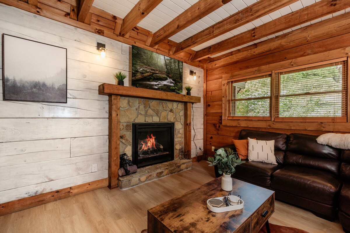 🔥 Neues Inserat AUSVERKAUF 🛏️ Hübsche, abgelegene Hütte mit 1 Schlafzimmer, 1 Kingsize-Bett, 1 Queensize-Schlafsofa, Schlafplätze für 4 Personen 📺 Außenprojektor am Whirlpool; 2 Smart-TVs für Streaming-Apps (Passwörter selbst mitbringen) 🔥 Grill, Feuerstelle ⭐ TOLLE LAGE! 15 Minuten vom Parkway entfernt 🛁 Badewanne im Schlafzimmer mit Kamin ☕ Kaffeemaschine (Keurig) 🐶 Haustiere willkommen 📶 Hochgeschwindigkeits-WLAN / ideal für Homeoffice 🚗 Kostenlose Parkplätze für 1–2 Autos