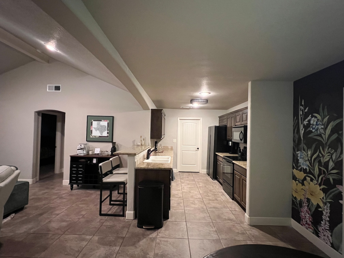 Gönn dir Luxus im „The Matador“, einer erstklassigen Unterkunft in zentraler Lage in den besten Gegenden von Lubbock, Texas. Nur wenige Minuten von der Texas Tech und gegenüber dem Greek Circle entfernt, bietet dieses Neubauhaus eine Kombination aus modernem Design und hochwertigen Annehmlichkeiten. Die Haupt-Suite ist geräumig und verfügt über ein Kingsize-Doppelbett, einen privaten Arbeitsbereich und einen großen begehbaren Kleiderschrank. Das Badezimmer verfügt über eine begehbare Dusche und eine Badewanne. Genieße den offenen Wohnraum mit einem ausziehbaren Sofa, einem 75-Zoll-Fernseher und viel Platz zum Ausbreiten.