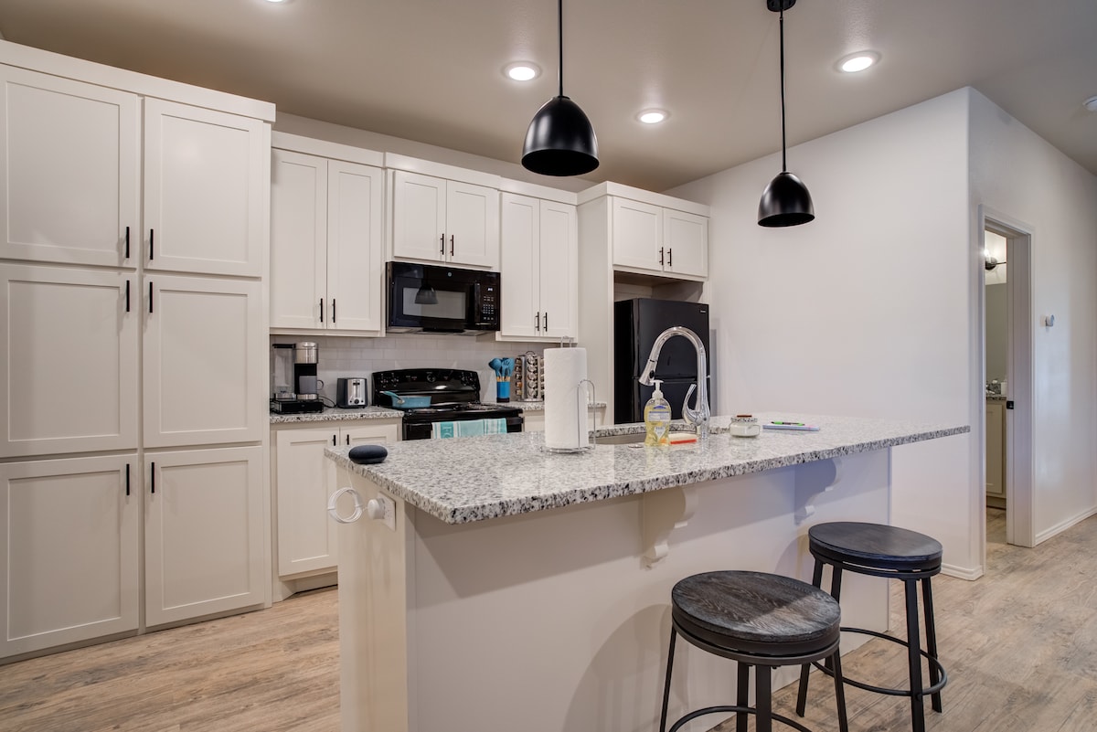 NEU 2021 (2) Schlafzimmer (2) Badezimmer (2) Auto Garage Stadthaus. In der Nähe von Einkaufsmöglichkeiten und Restaurants im West End (4,3 Meilen), der Texas Tech University (2 Meilen) und der United Spirit Arena (4,5 Meilen) für Texas Tech Basketball oder dein Lieblingskonzert. Alle Annehmlichkeiten von zu Hause auf Airbnb umfassen: schnelles WLAN, kostenlose Parkplätze, Waschmaschine und Trockner, 1 neue hochwertige Queen- und 1 Kingsize-Matratze, 1 ausrollbares Bett, Kerig, Nest AC/Heizung und Haustür-Überwachungskamera, August-Schlösser für einfachen Zugang, funktionale Küche für Mahlzeiten zu Hause