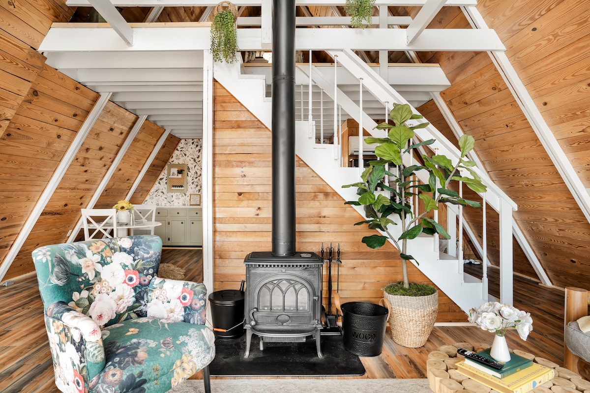 Entfliehe in die Hiya Cabin, dem ultimativen Rückzugsort, um dich zu entspannen, zu feiern oder einfach nur die Ruhe zu genießen. Dieses atemberaubende A-Rahmen-Haus bietet einen atemberaubenden Blick auf die Blue Ridge Mountains, einen privaten Whirlpool und eine wohltuende Fasssauna. Im Inneren erwartet dich ein stilvoller und gemütlicher Rückzugsort mit einem weichen Kingsize-Bett, einer voll ausgestatteten Küche, Brettspielen, einer Xbox und einer EV-Ladestation. Verbringe deine Abende an der Feuerstelle und genieße die Bergluft und den Sternenhimmel. Nur wenige Minuten von den Luray Caverns, dem Lake Arrowhead, dem Shenandoah-Nationalpark und vielem mehr entfernt.
