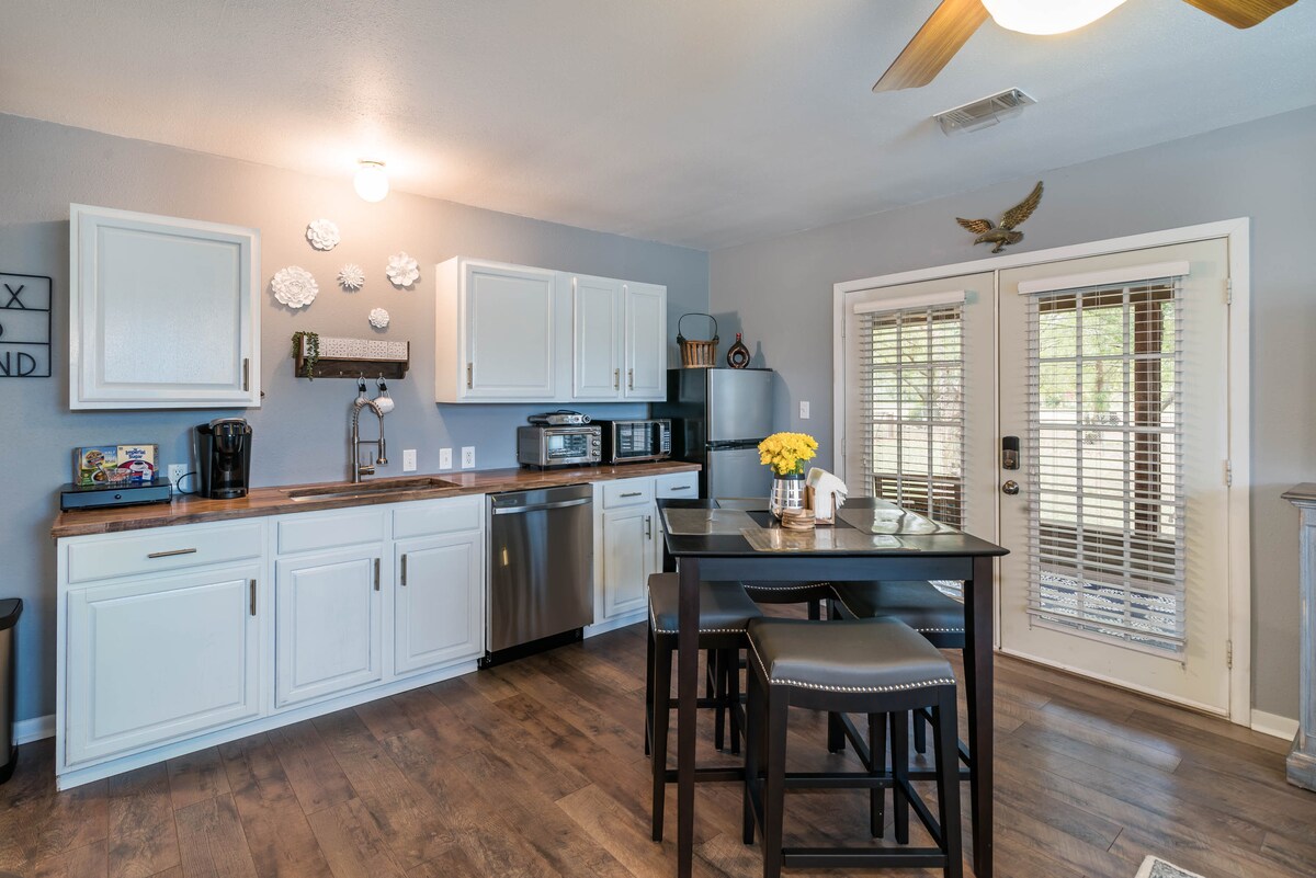 Entfliehe für einen erholsamen Kurzurlaub inmitten des charmanten texanischen Farmlebens! Vergiss, dass du nur wenige Minuten von der Hektik der Stadt entfernt bist, wenn du im The Barn ankommst! Genieße den Morgenkaffee mit einem Sonnenaufgang auf der Terrasse, frischen Eiern vom Bauernhof, Lamas und Longhorns. Ob es ein gutes Buch im gemütlichen Wohnzimmer oder süßer Tee auf einer Terrassenschaukel ist, Entspannung erwartet dich! Du wirst sicherlich Erinnerungen schaffen, wenn du grillst, Gartenspiele spielst und Feuerstellen-S'mores unter dem Sternenhimmel zubereitest!