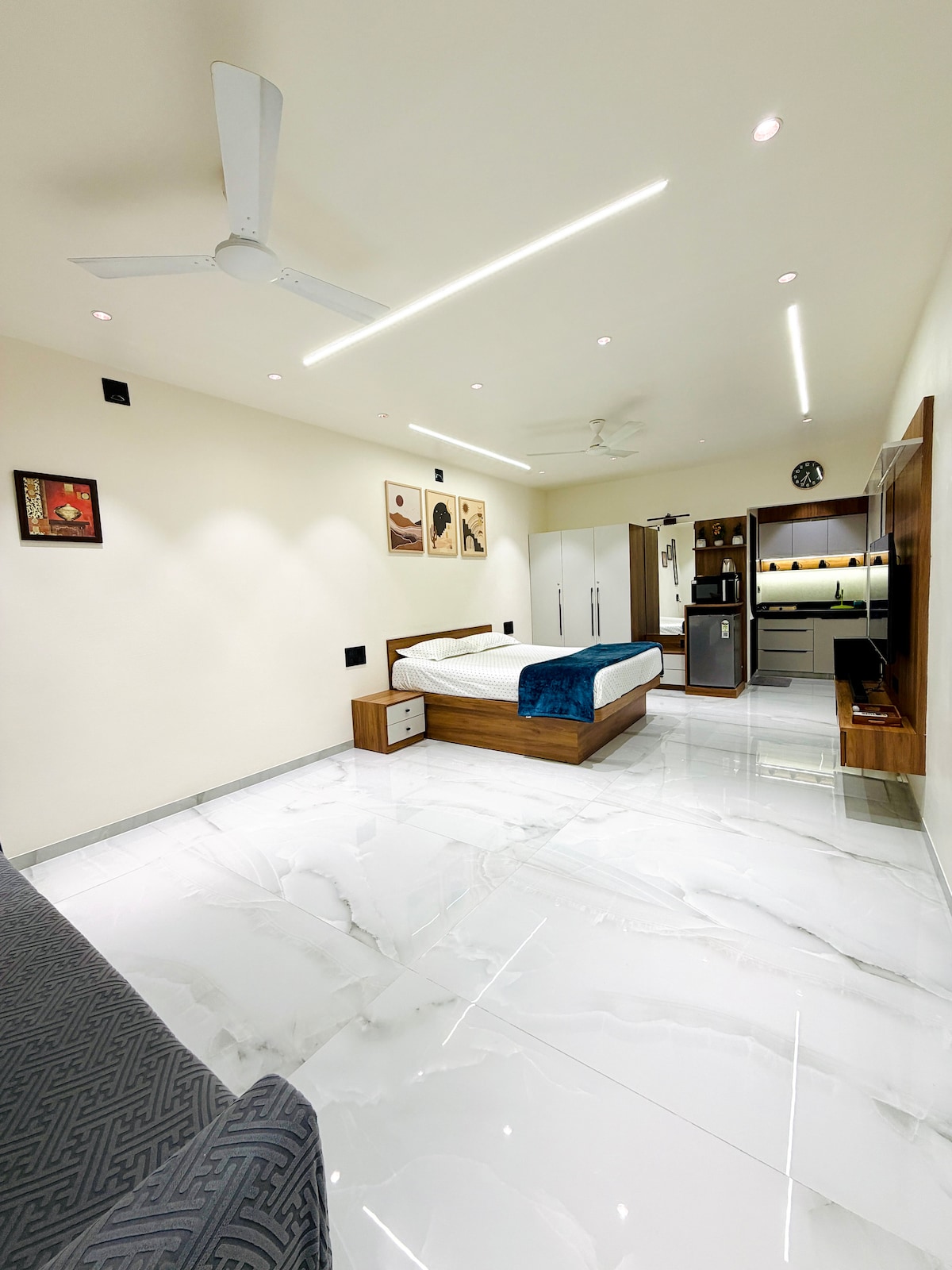 Luxuriöse 1,5-Zimmer-Wohnung im 14. Stock des Godrej Garden City mit herrlichem Blick auf die Skyline! ✨ Vollständig möbliert mit Klimaanlage, Smart-TV, Waschmaschine, Umkehrosmoseanlage und einer Einbauküche mit allen wichtigen Utensilien. Zugang zum Fitnessstudio, zur Bibliothek und zu den Gärten (Poolzugang eingeschränkt). Ruhige Wohnanlage mit 24-Stunden-Sicherheitsdienst. Nur 5 Minuten zum SG Highway, 15 Minuten zum NaMo Stadium und 30 Minuten zum Flughafen – perfekt für Urlaubs- oder Arbeitsaufenthalte.